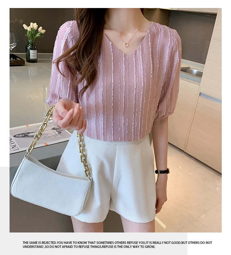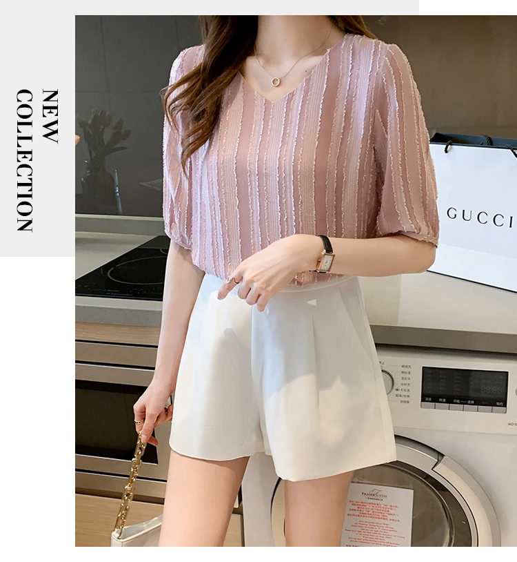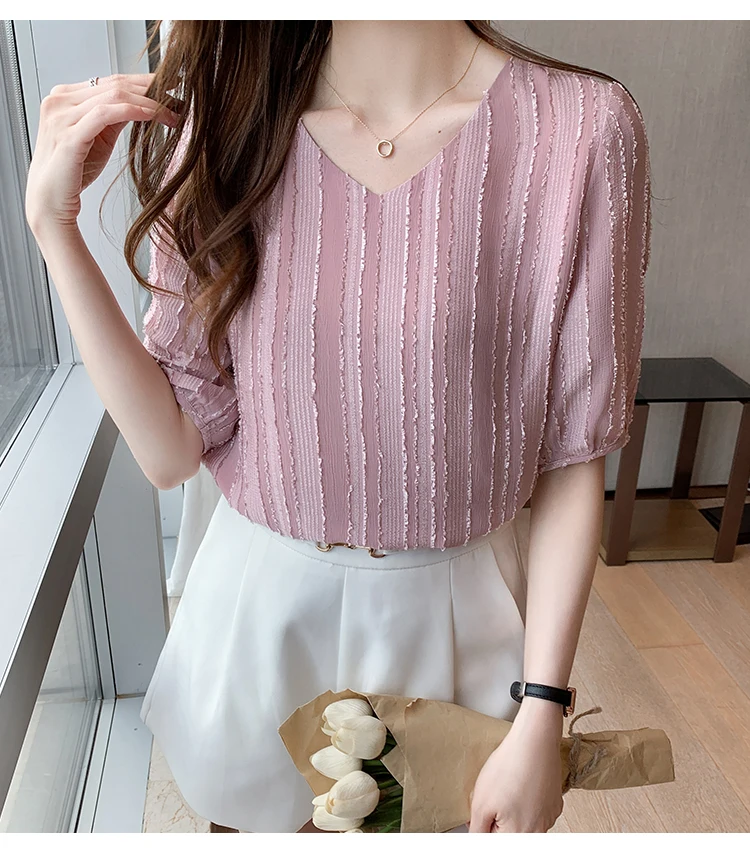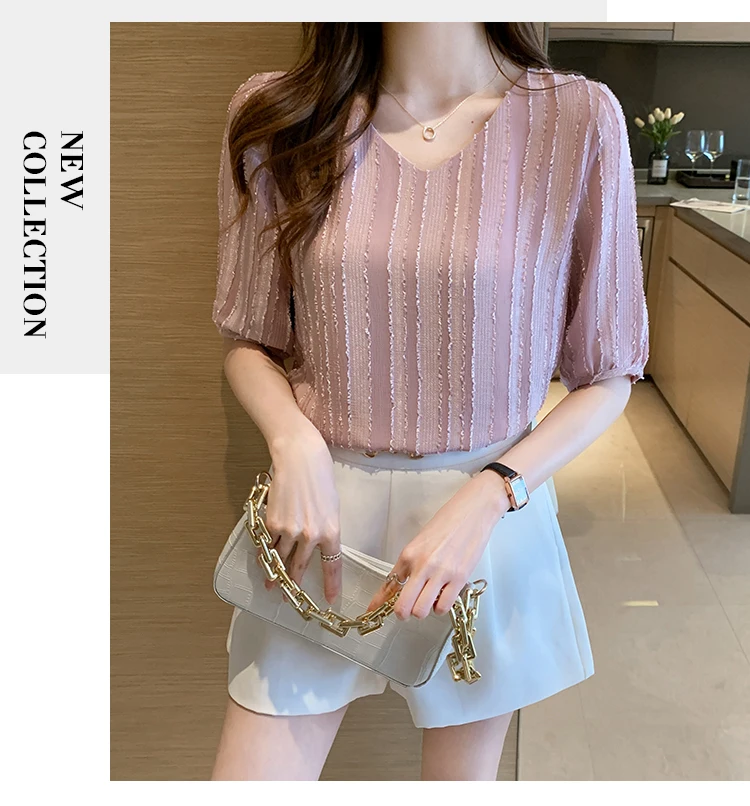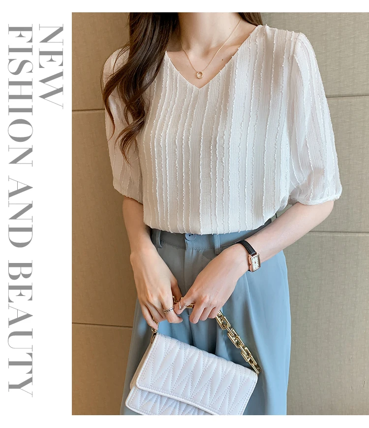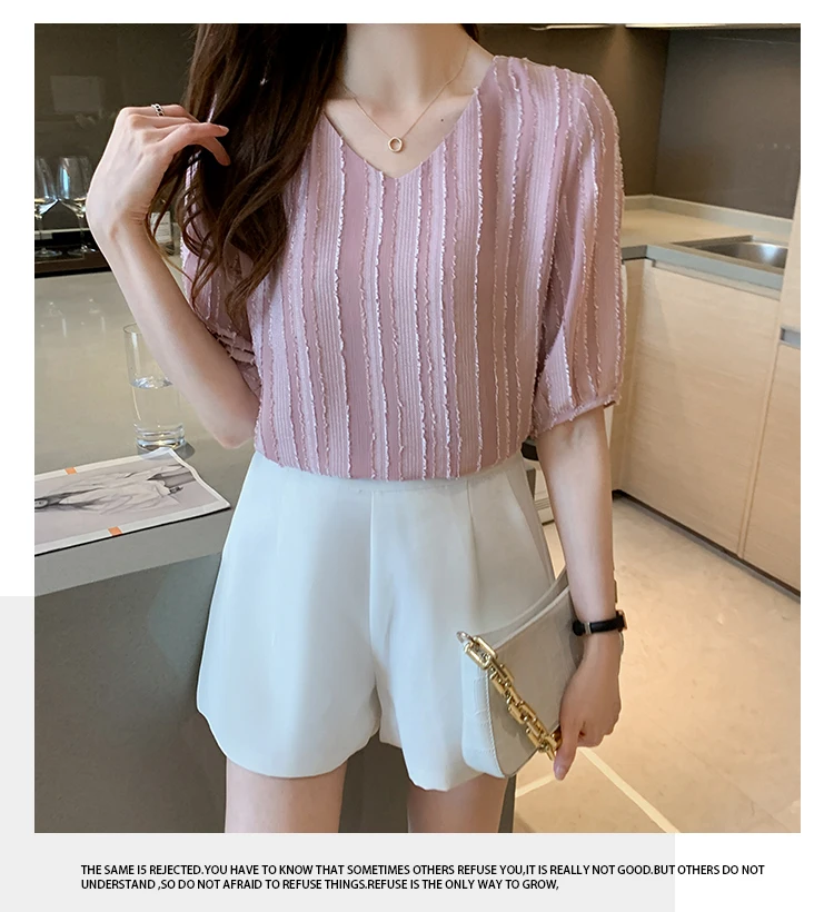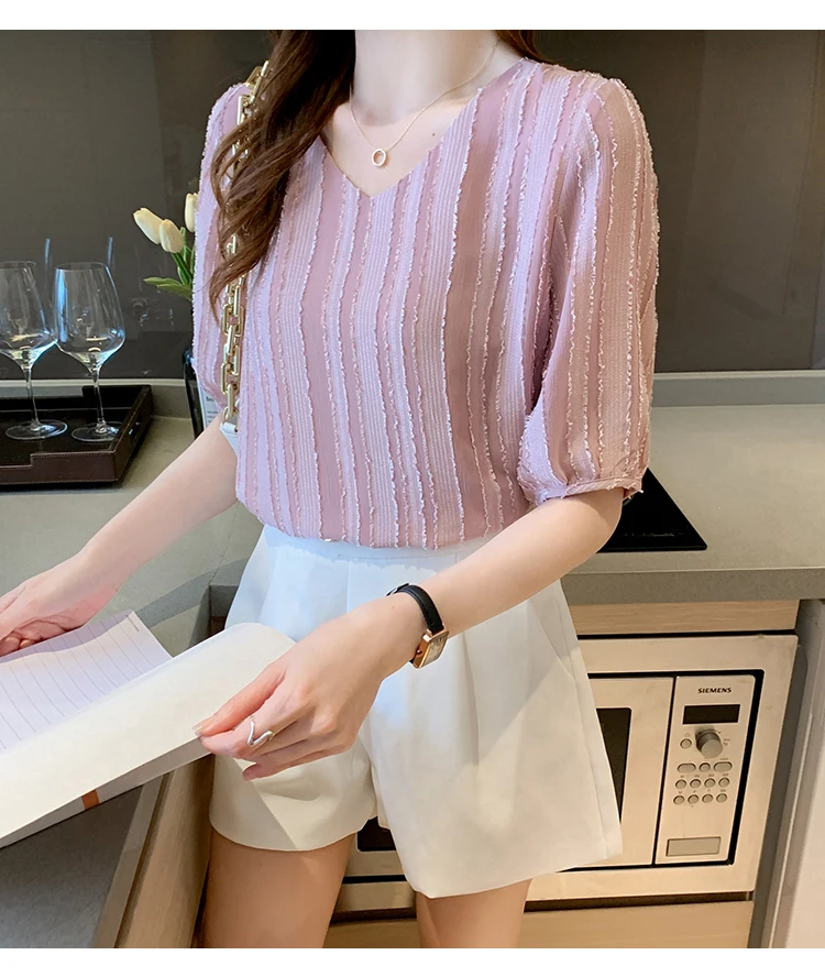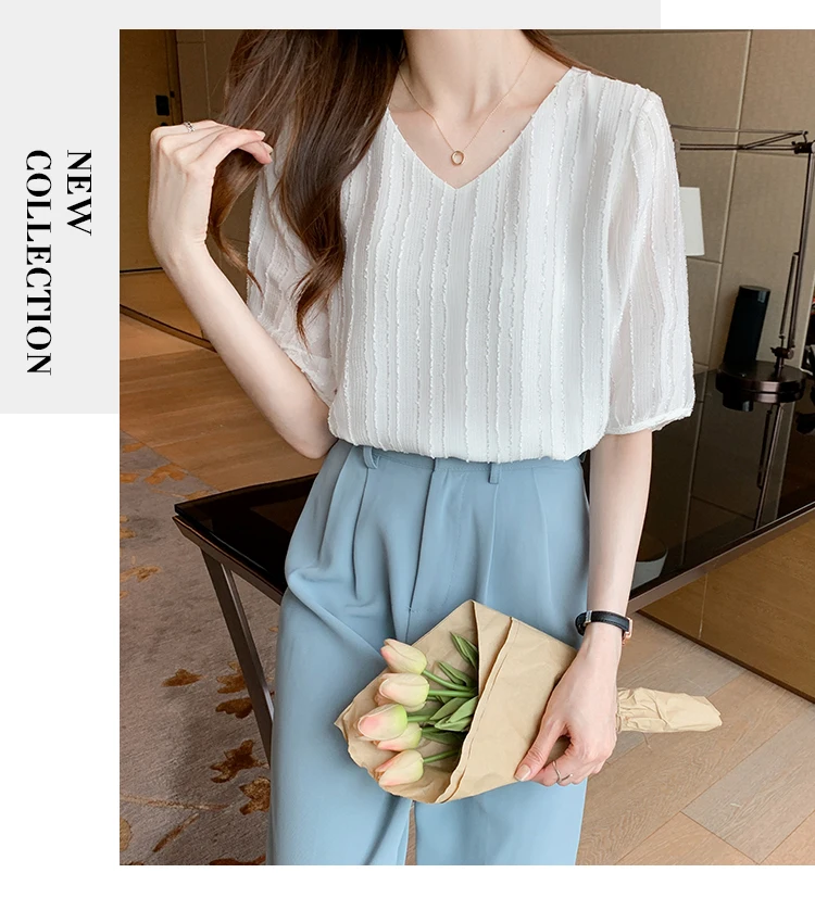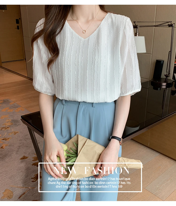 Znbbw Women Blouse Tops Short Sleeve V-Neck Chiffon Blouse Shirt Blouse Women Blusas Mujer De Moda 2023 Blouses Top Femme E952