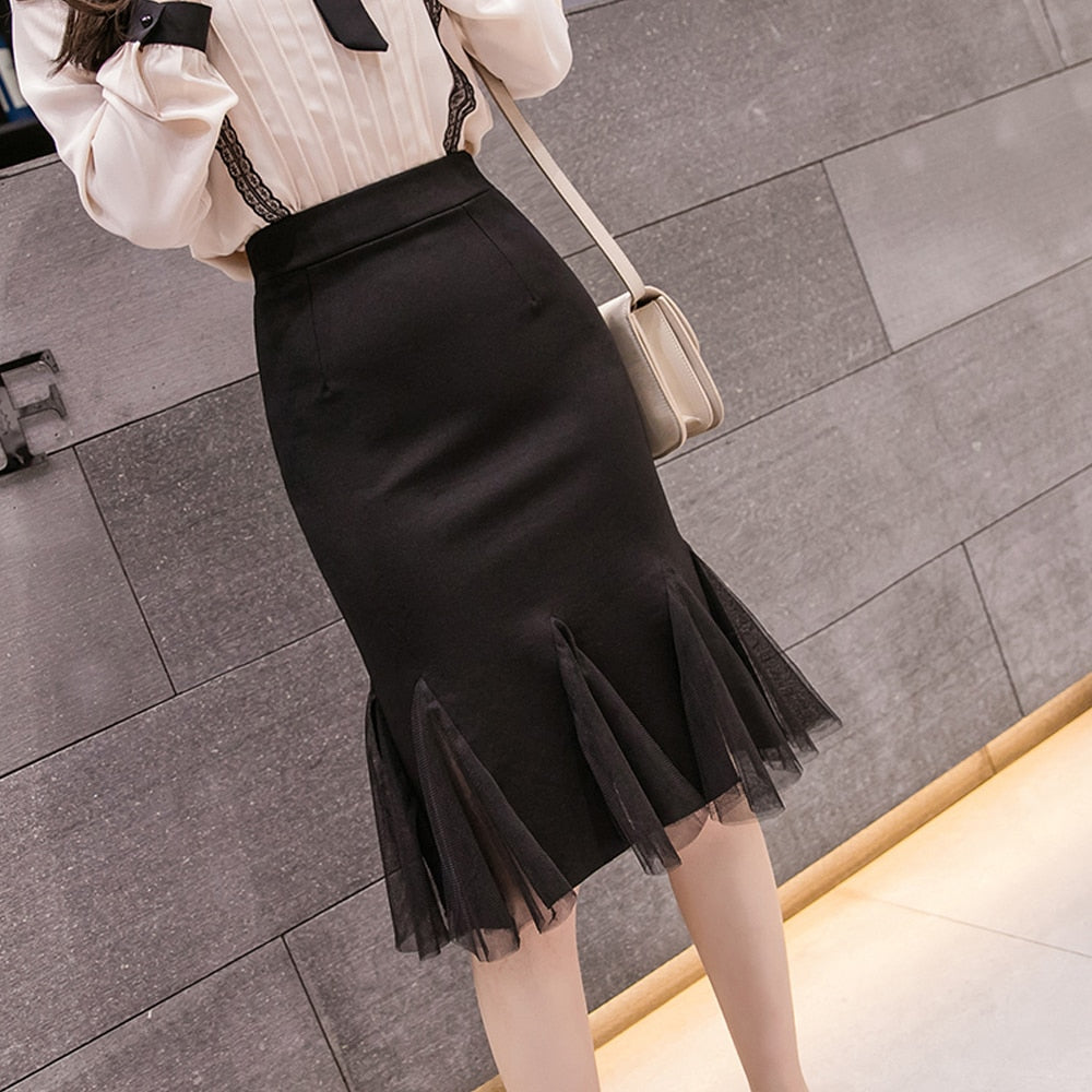 Znbbw Women Bodycon Mermaid Skirt Sexy Stitching High Waist Stretch Skirts Vintage Elegant Package Hip Skirts Sexy Saias Jupes Falads