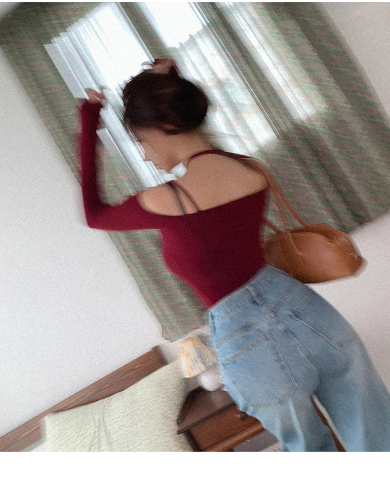 Znbbw Women Cropped Tee Shirts Lady Long Sleeve Halter Slash Neck Stretchy Crop Tops Girls Slim T Shirts