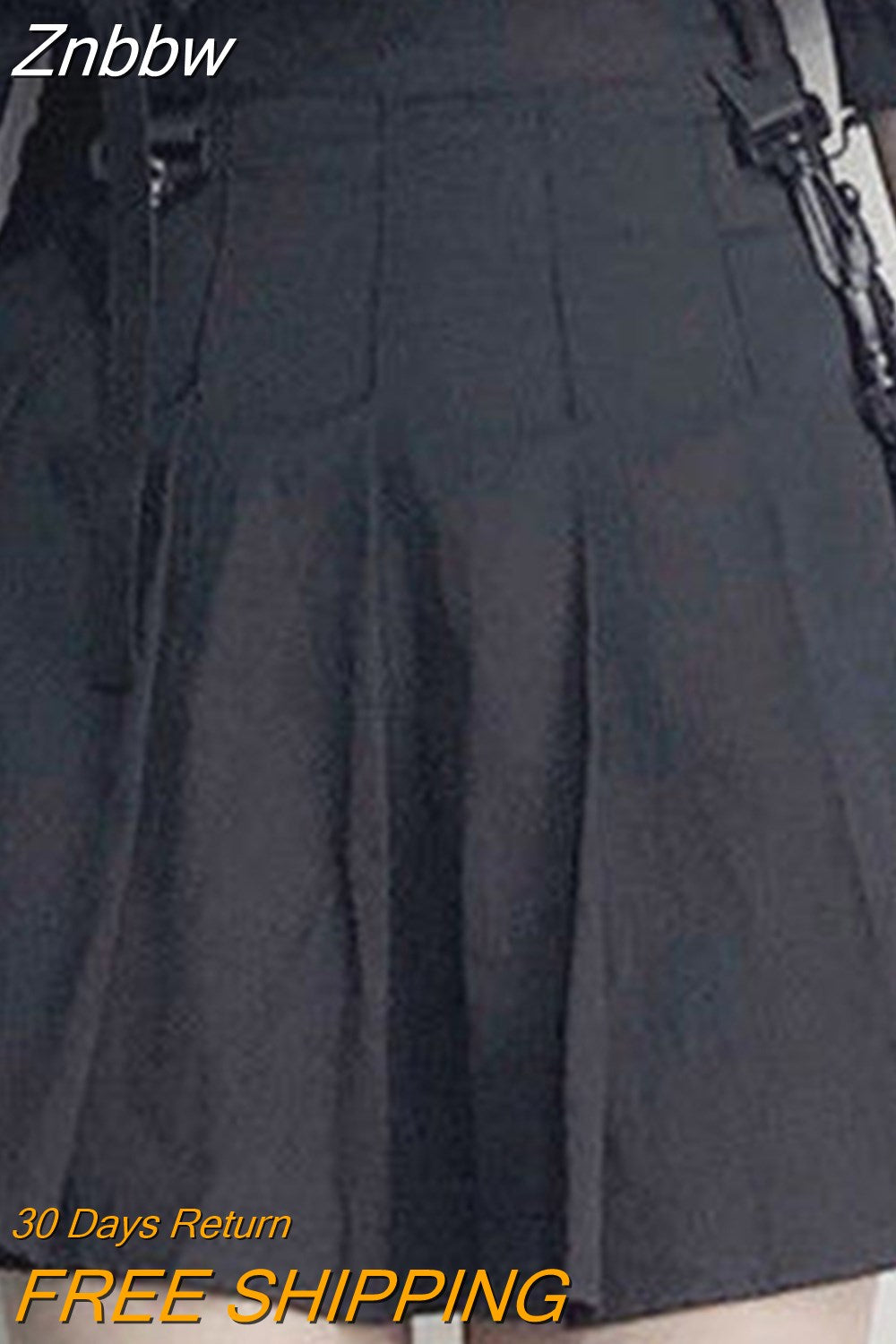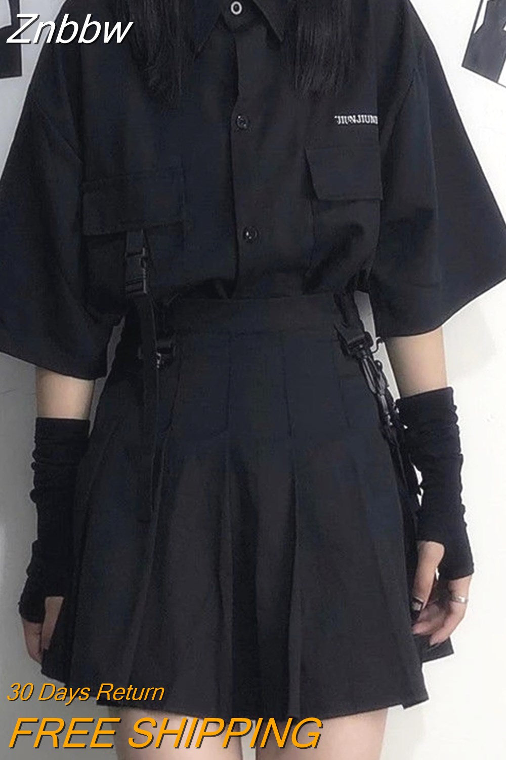 Znbbw Women Dark Black Shirt And Gothic Mini Skirt Two Piece Set Female BF Shirt Top Sexy Pleated Skirt Set Ladies Summer 2 Piece Suit