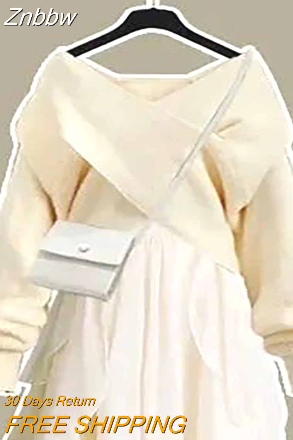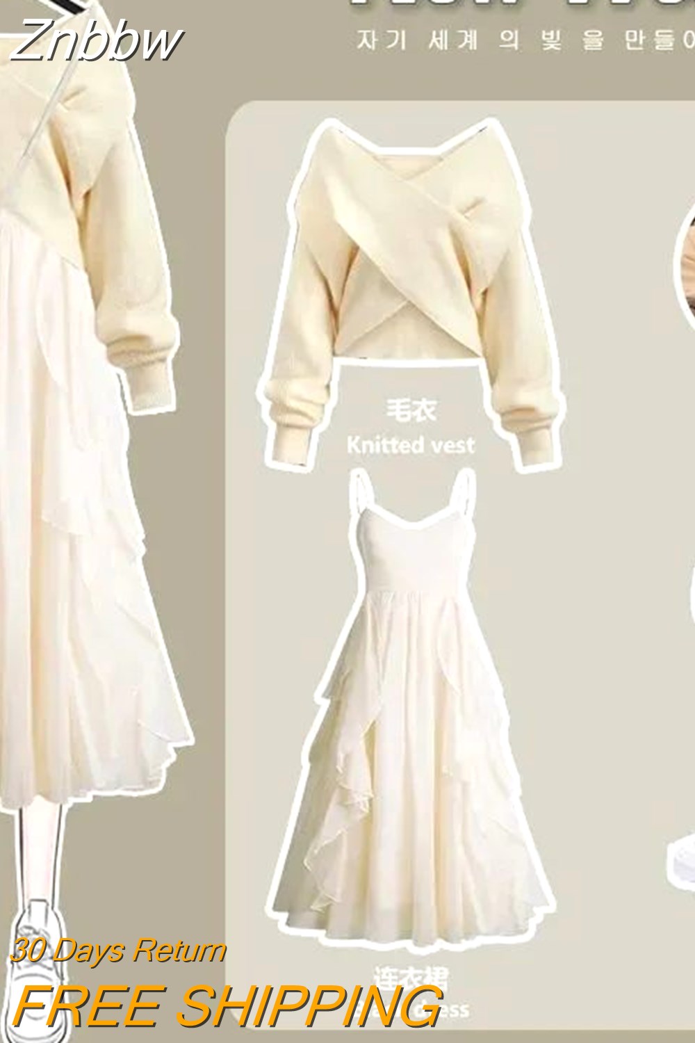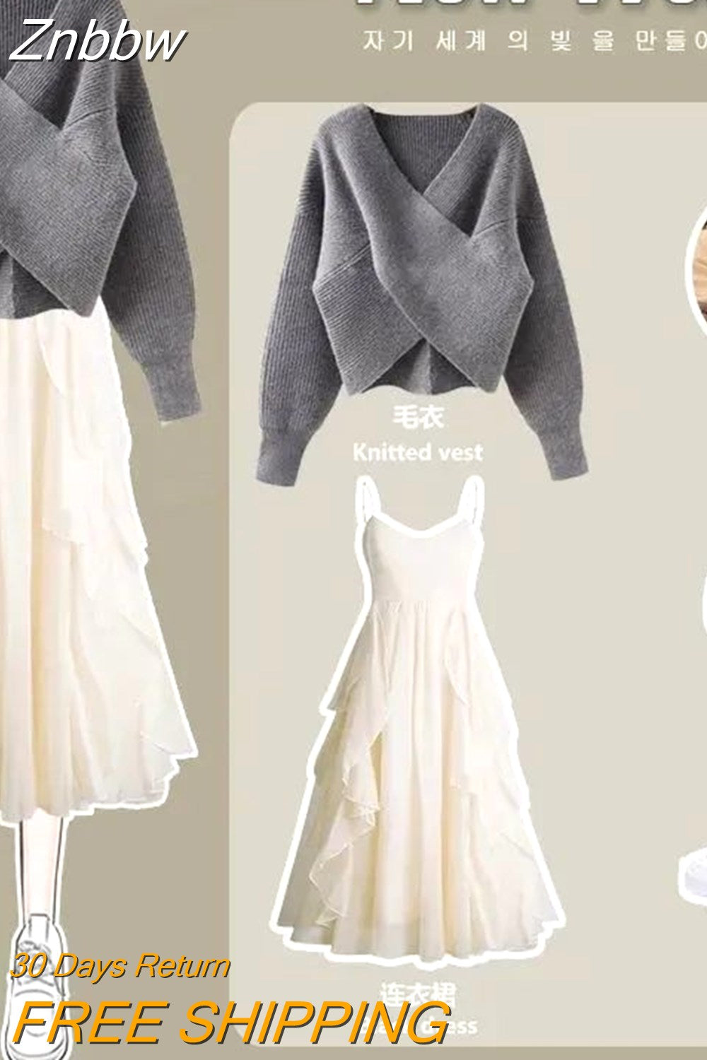 Znbbw Women Dress Suit Autumn Slim Long Sleeve Long Dresses V-neck Knit Sweater Dress Two-piece Suit Elegant Vestidos Clothes