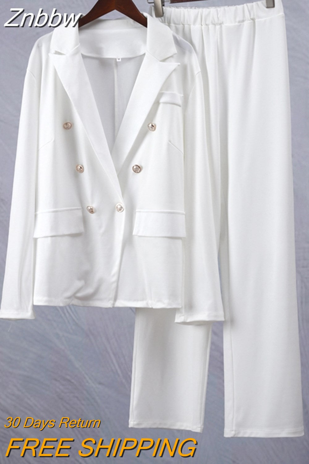 Znbbw Women Elegant Solid Fashion 2 Piece Set Full Sleeve High Waist Trouser Blazer Suit Office Ladies Business Commute Pant Suits