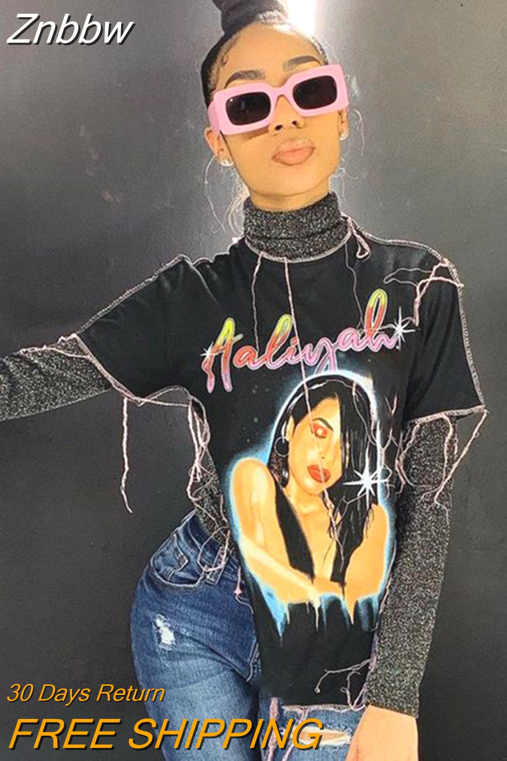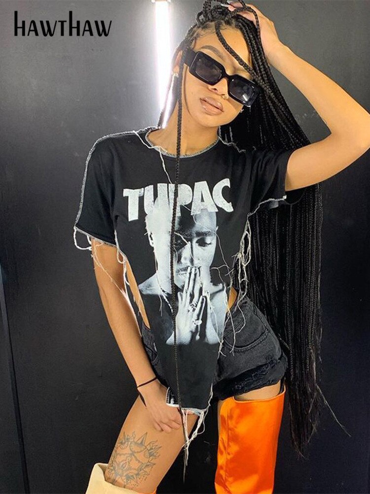 Znbbw Women Fashion Summer Autumn Short Sleeve Letter Print Irregular Black T Shirt Tops 2023 Fall Clothes Wholesale Items