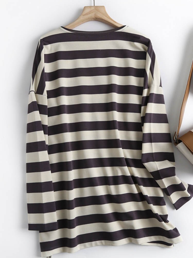 Znbbw Women High Quality Striped Print Sweatshirts Long Sleeve O Neck Loose Pullovers Female Tops