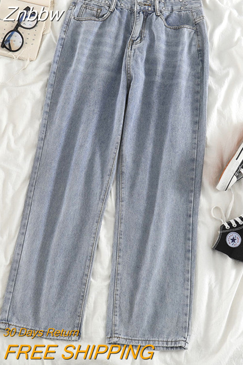 Znbbw Women Jeans High Waist Clothes Wide Leg Denim Clothing Blue Streetwear Vintage Quality 2023 Fashion Harajuku Straight Denim Pant