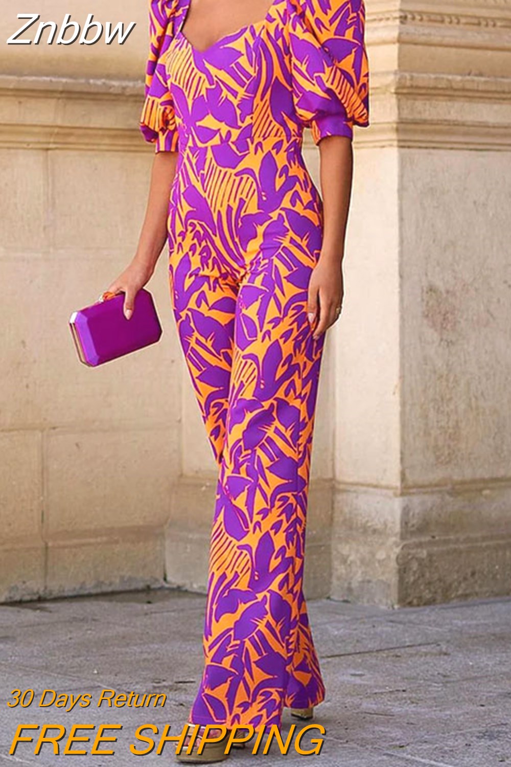 Znbbw Women Jumpsuit Fashion Elegant Short Sleeve V Neck Nipped Waist Loose Casual Wide Legs Pants Romper High Streetwear