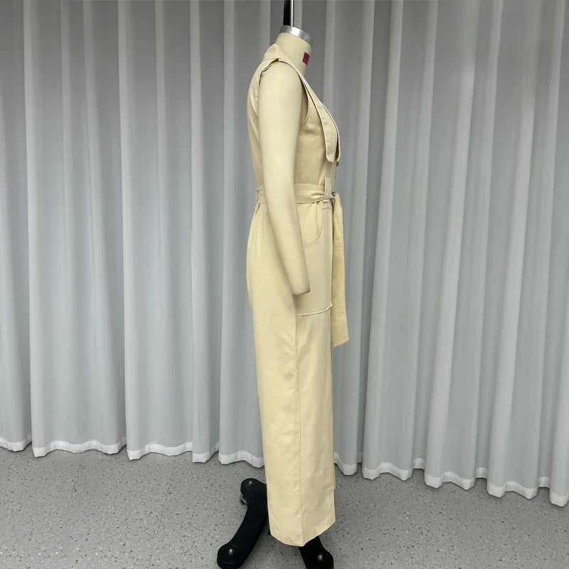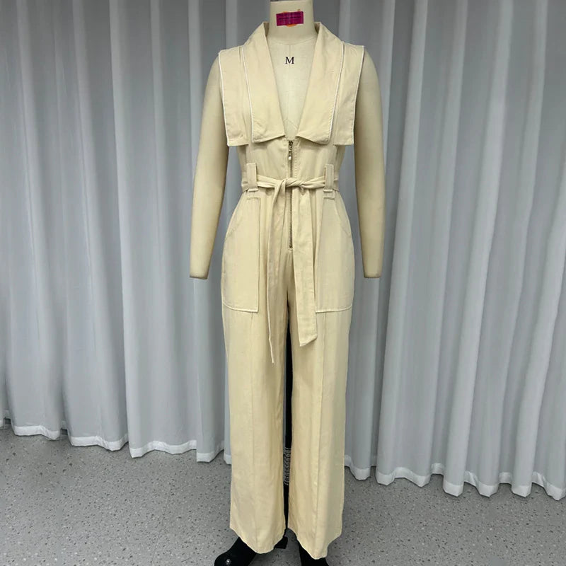 Znbbw Women Jumpsuits Autumn Fashion Casual V Neck Sleeveless Solid Nipped Waist Lace Up Long Pants Rompers High Streetwear