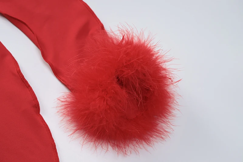 Znbbw Women Long Sleeve Fur Patchwork Bodycon Streetwear Red Long Dress 2023 Autumn Clothes Wholesale Items For Business