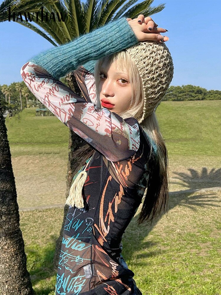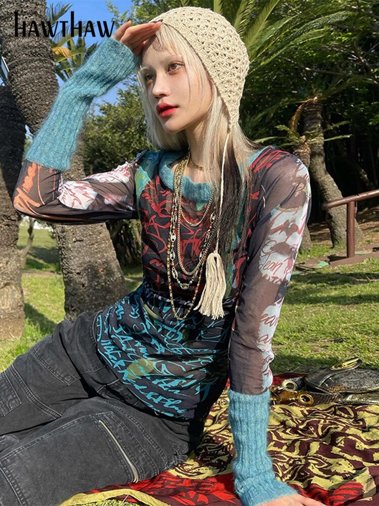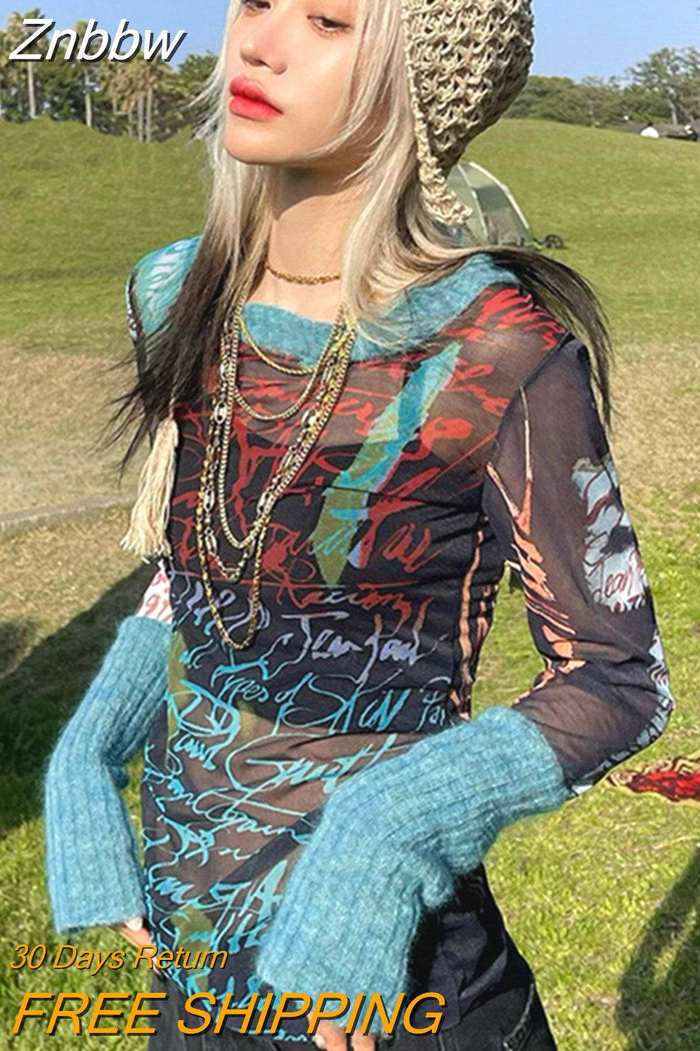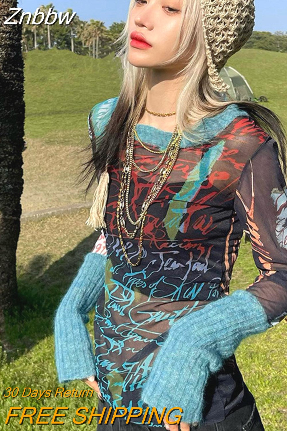 Znbbw Women Long Sleeve Mesh See Through Streetwear T Shirts Tops Tees 2023 Autumn Clothes Wholesale Items For Business