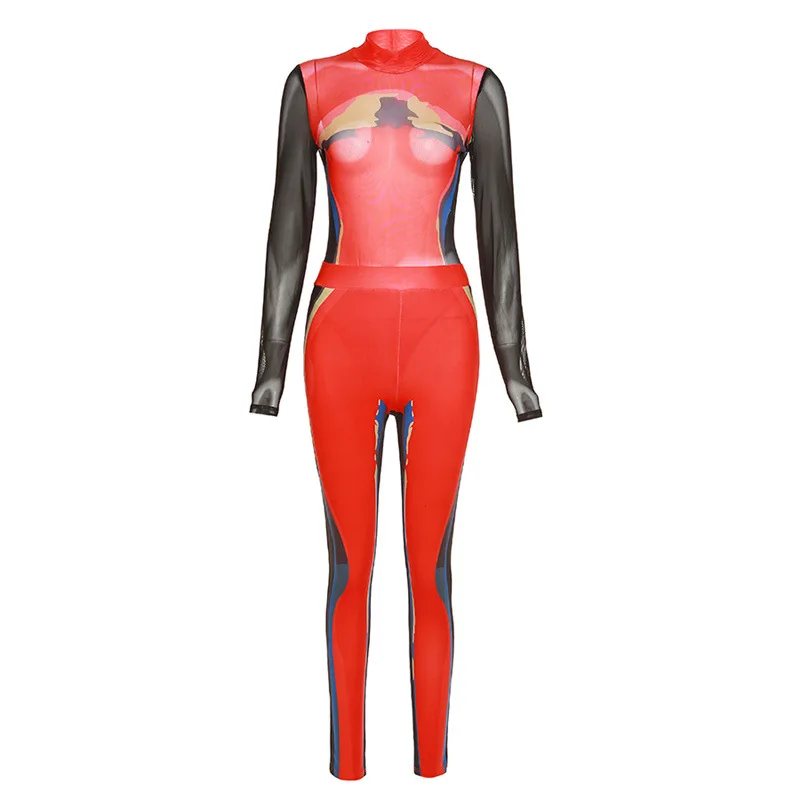 Znbbw Women Long Sleeve Mesh See Through T Shirt Tops Long Pant Two Piece Sets 2023 Fall Clothing Wholesale Items For Business