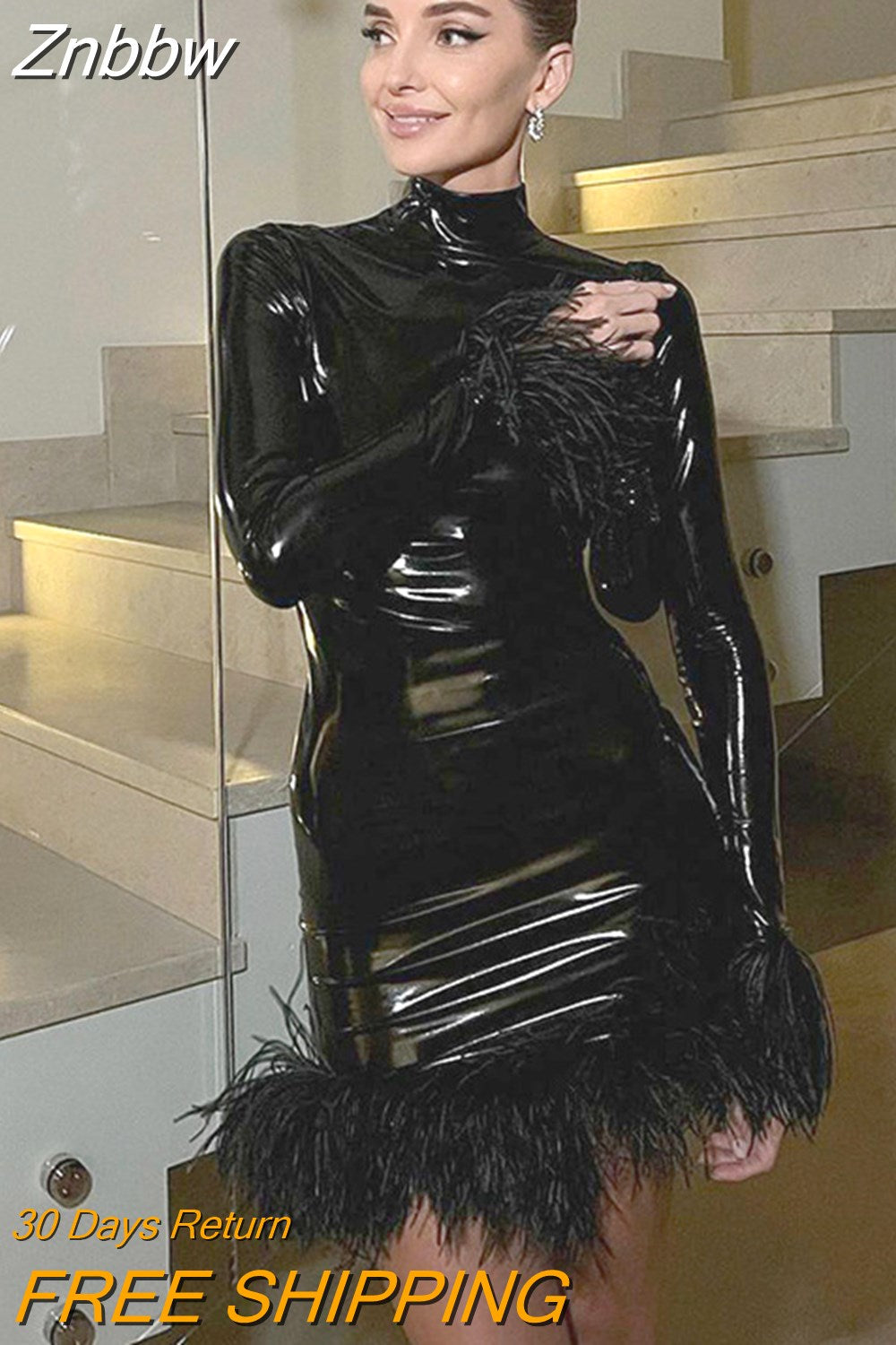 Znbbw Women Long Sleeve Party Club Bodycon Streetwear Leather Black Mini Dress 2023 Fall Clothing Wholesale Items For Business
