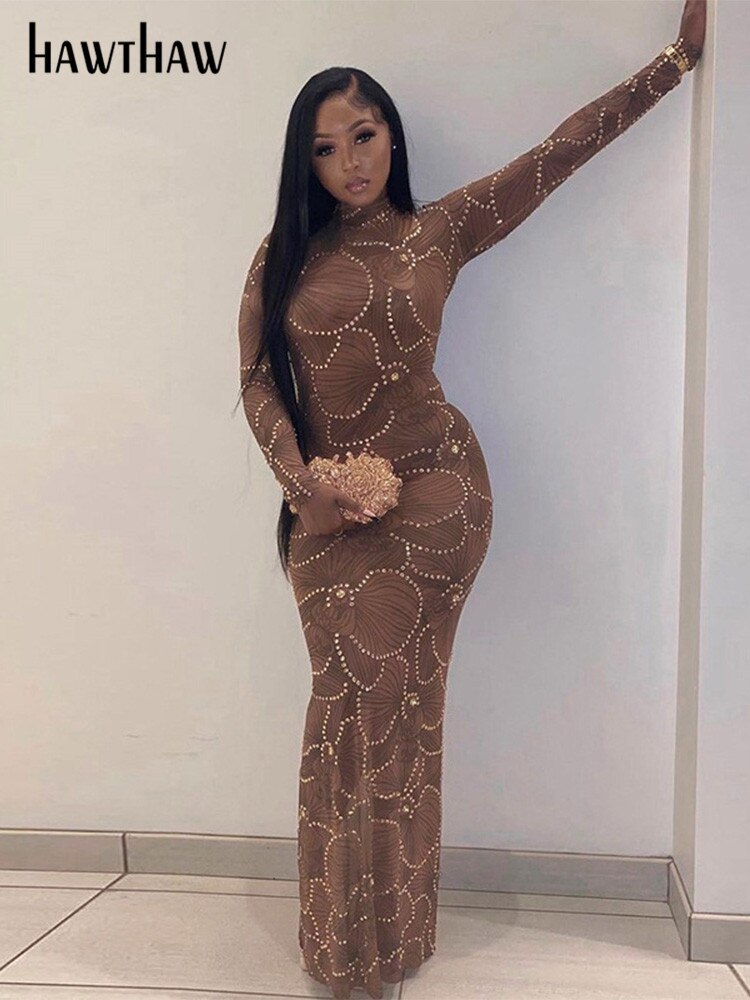 Znbbw Women Long Sleeve Party Club Evening Bodycon See Through Long Dress 2023 Autumn Clothes Wholesale Items For Business