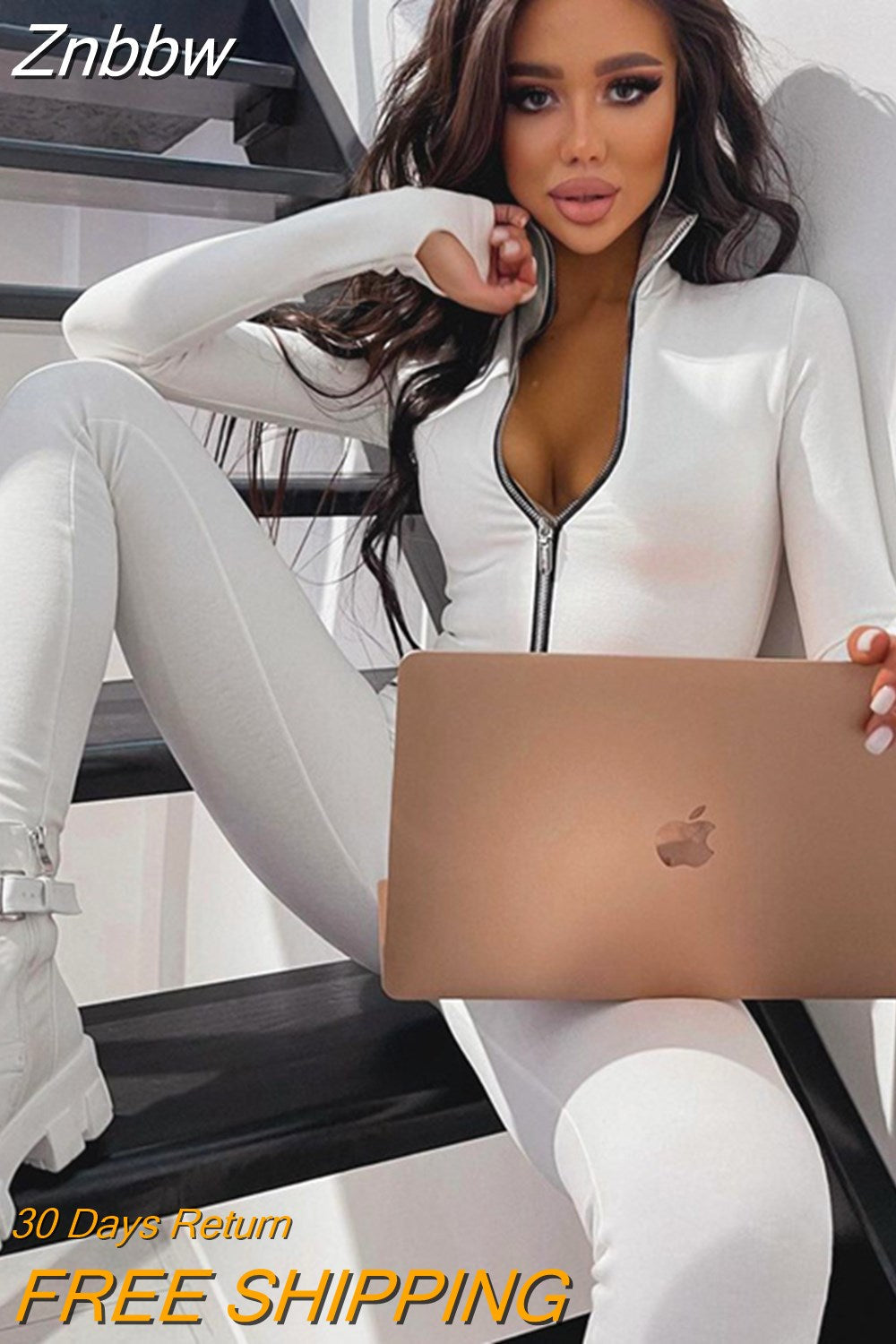 Znbbw Women Long Sleeve Zipper Bodycon Black White Jumpsuit Overalls 2023 Spring Autumn Clothes Wholesale Items Dropshipping
