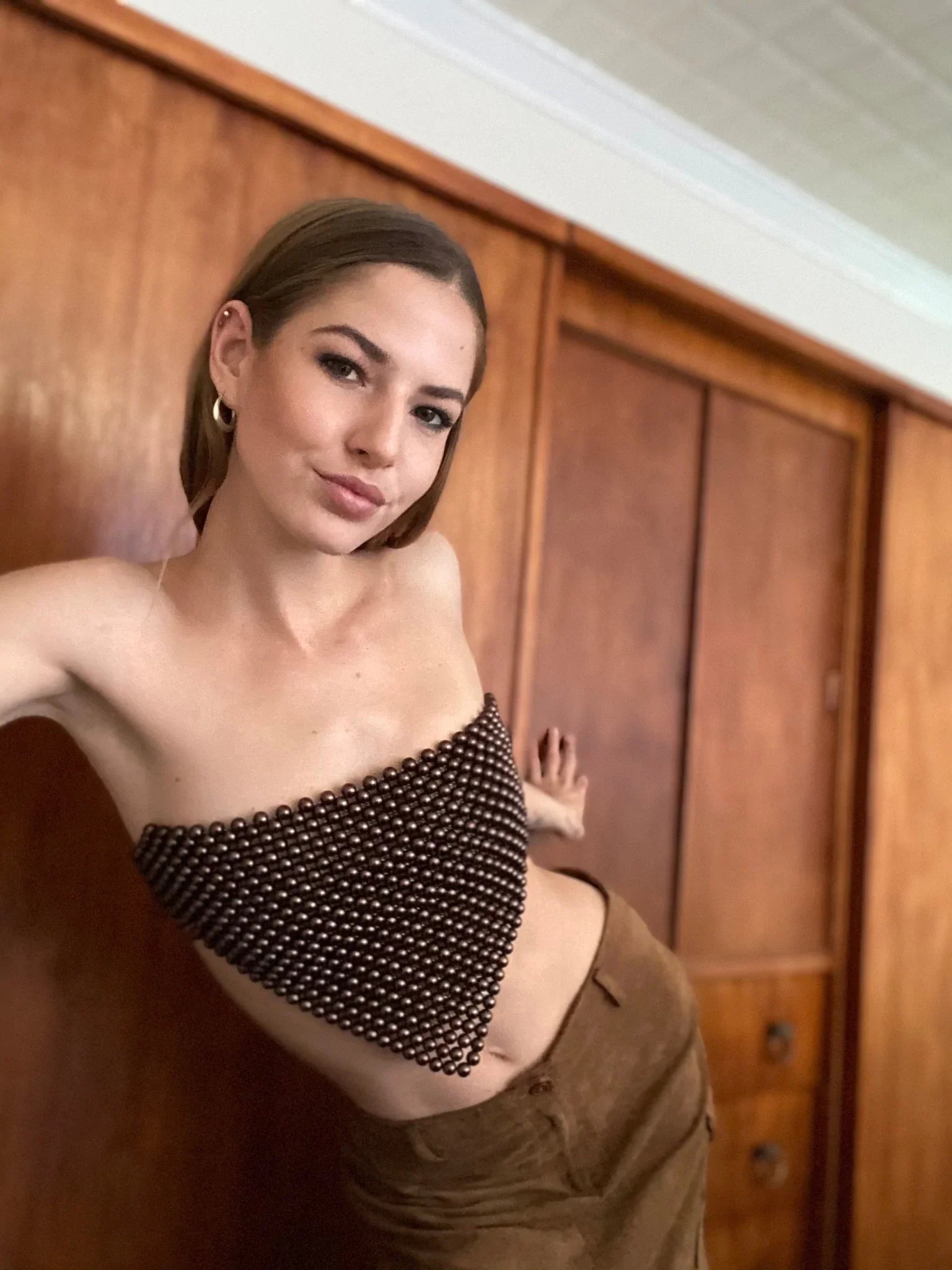 Znbbw Women Pearl Crop Top Fishnet Hollow Out Camisole Beach Holiday Cover-ups Chic Women Sleeveless Summer Matching Vest Korean