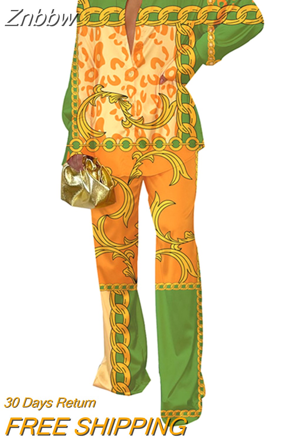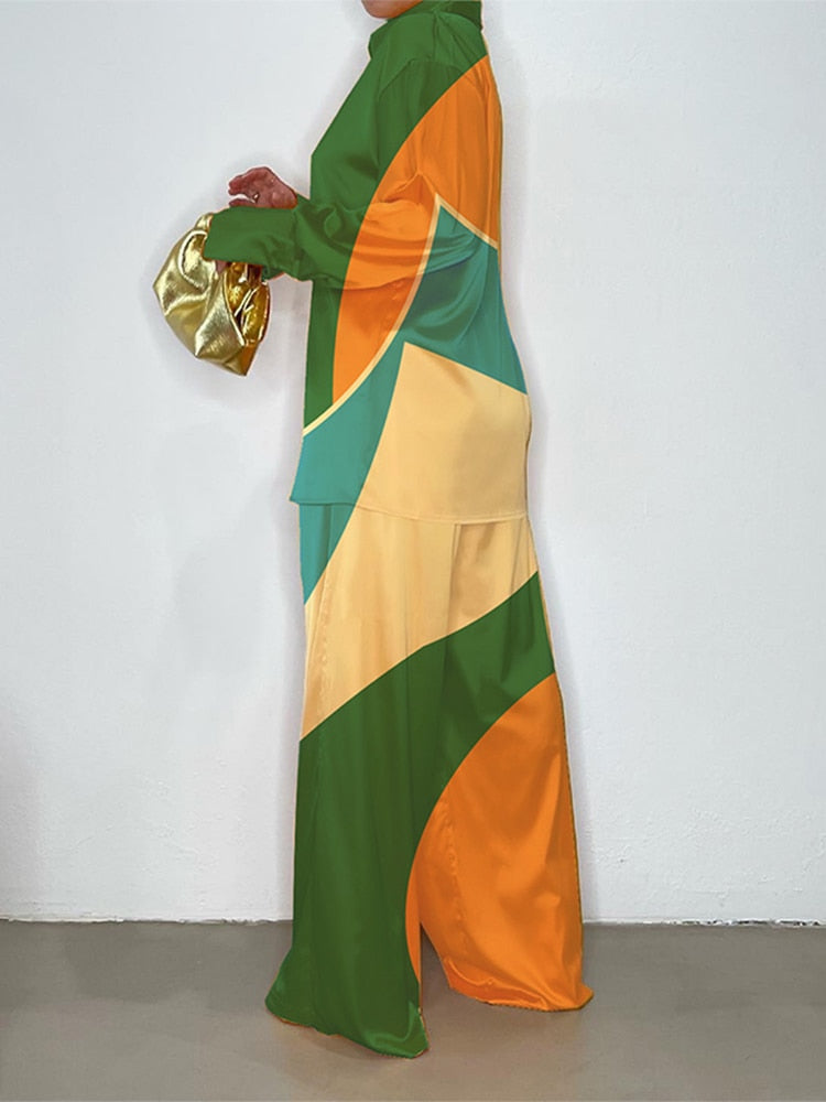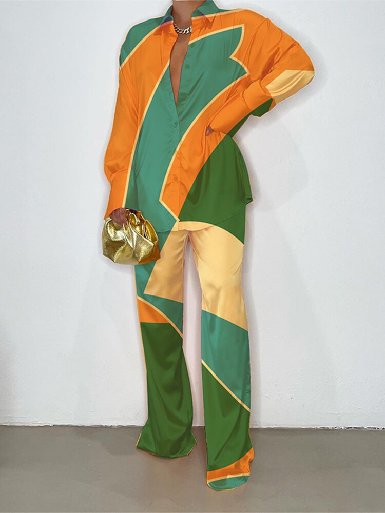 Znbbw Women Printed Long Sleeve Shirt 2 Piece Set Elegant Lapel Single-breasted Tops Suit 2023 Female Wide Leg Pants Outfits