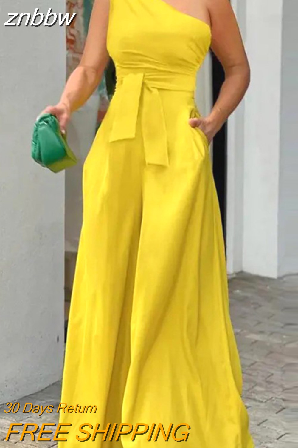 znbbw Women Sexy Backless Lace-Up Bow Romper Sexy Puff Sleeve Pocket Playsuits Fashion Solid Color V-Neck High Waist Wide Leg Jumpsuit