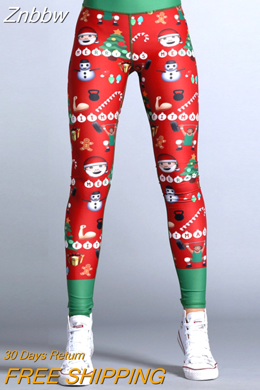 Znbbw Women Sexy Christmas Leggings High Waist Skinny Legging Fitness Ladies Printed Workout Leggings Stretch Trousers Pants
