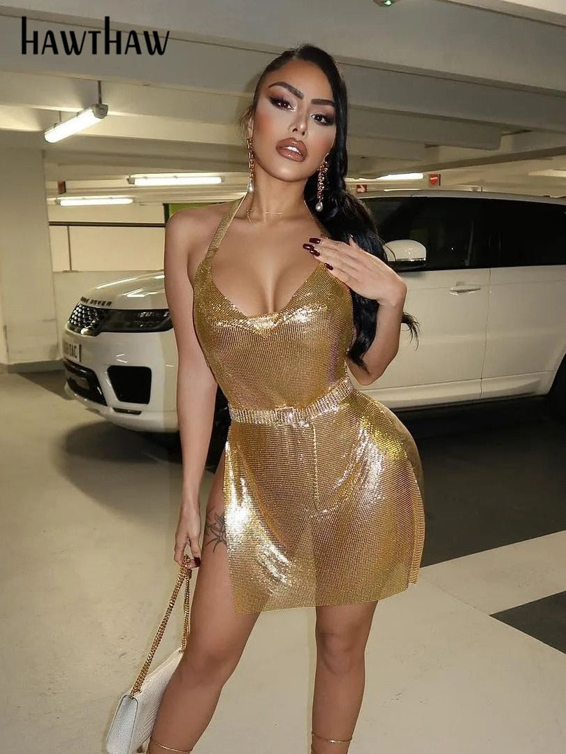 Znbbw Women Sexy Halter Party Club Bodycon Backless Bodycon Split Mini Dress 2023 Summer Clothes Wholesale Items For Business