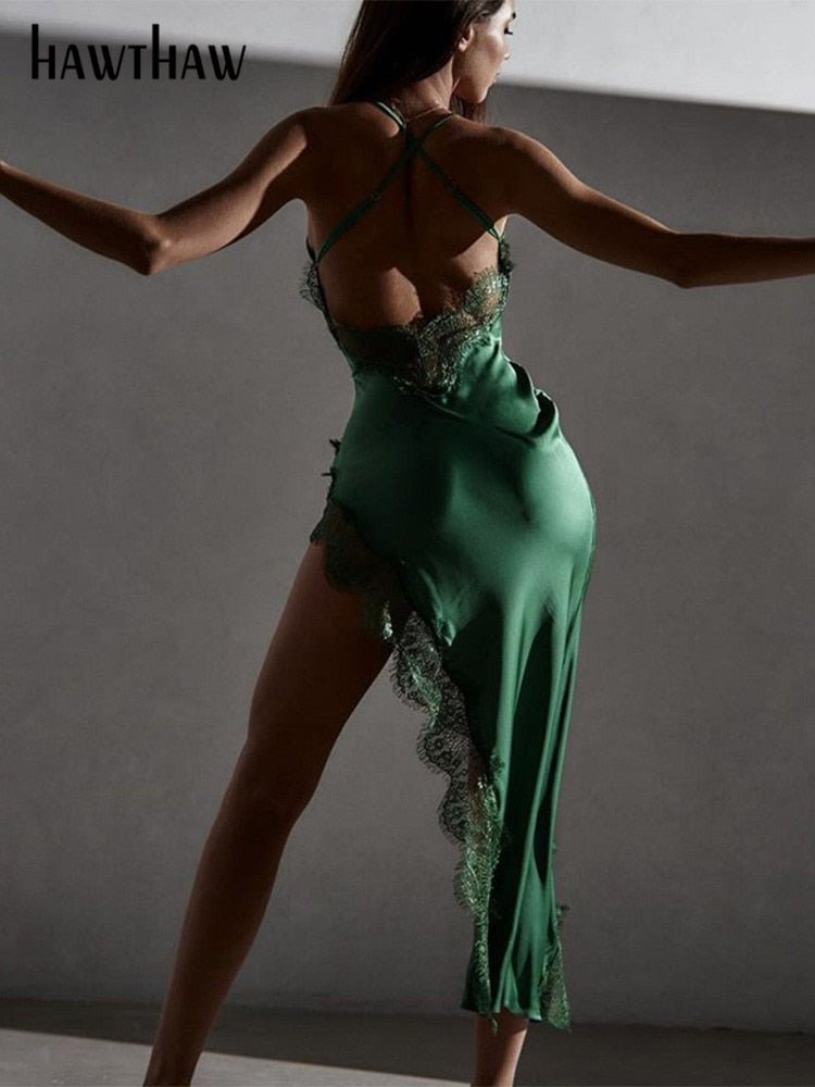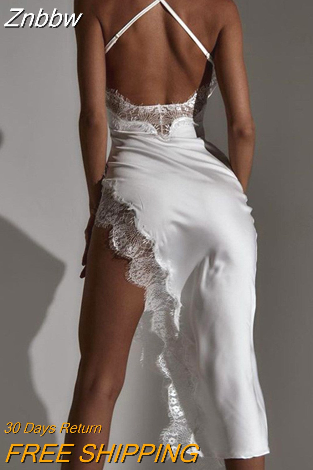 Znbbw Women Sexy Lace Party Club Backless Bodycon Stain Black Straps Midi Dress 2023 Summer Clothes Wholesale Items For Resale