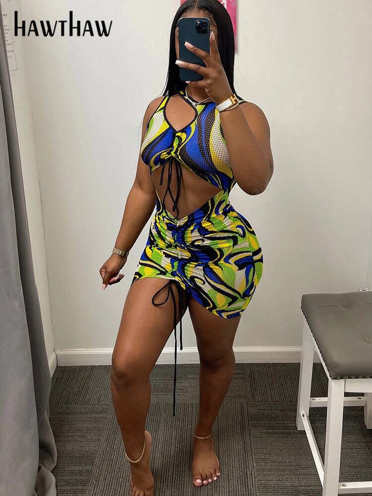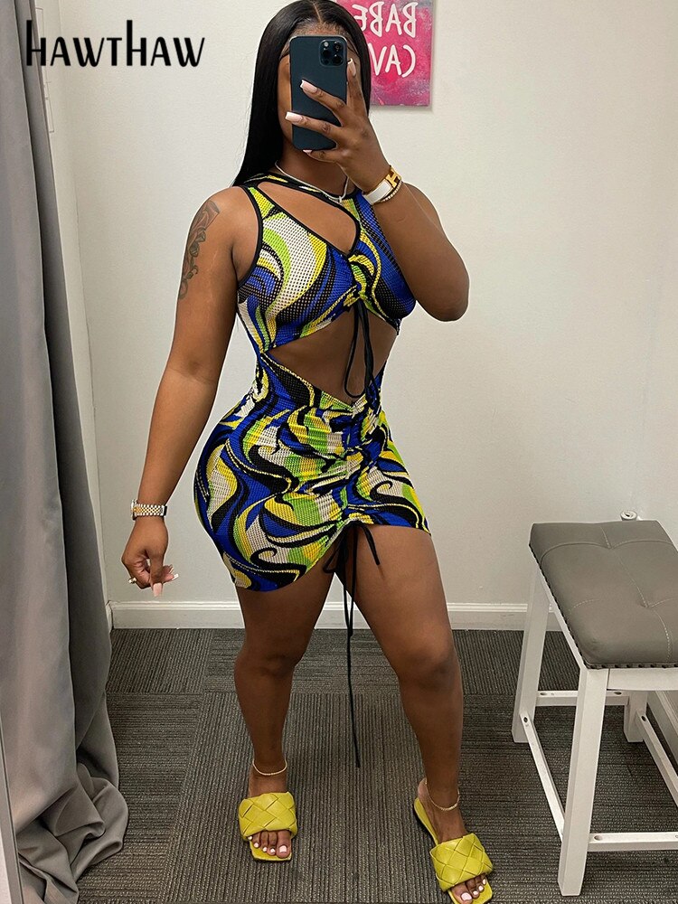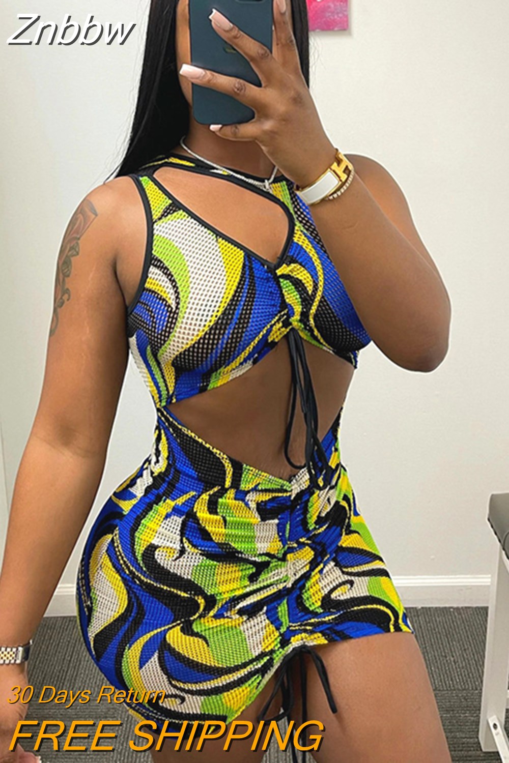 Znbbw Women Sexy Printed Party Club Hollow Out Bodycon Mini Dress Streetwear 2023 Summer Clothes Wholesale Items For Business