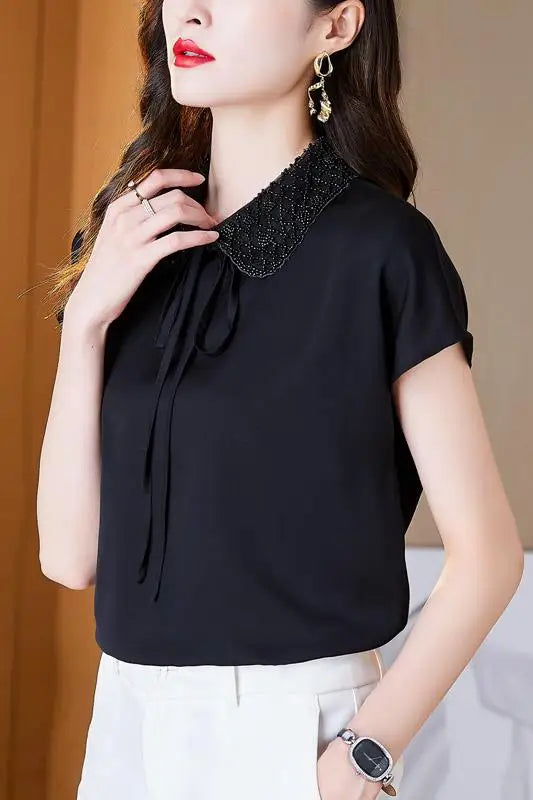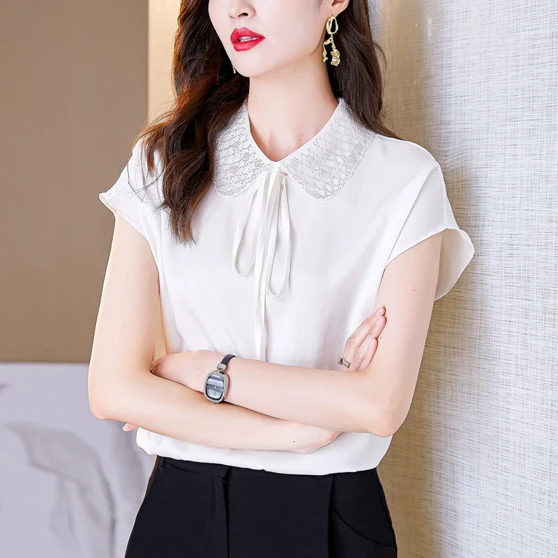 Znbbw Women Short Sleeve Chiffon Blouse Shirt Tops Women Blusas Mujer De Moda 2023 Verano Blouses Camisas Blusa Feminina F485