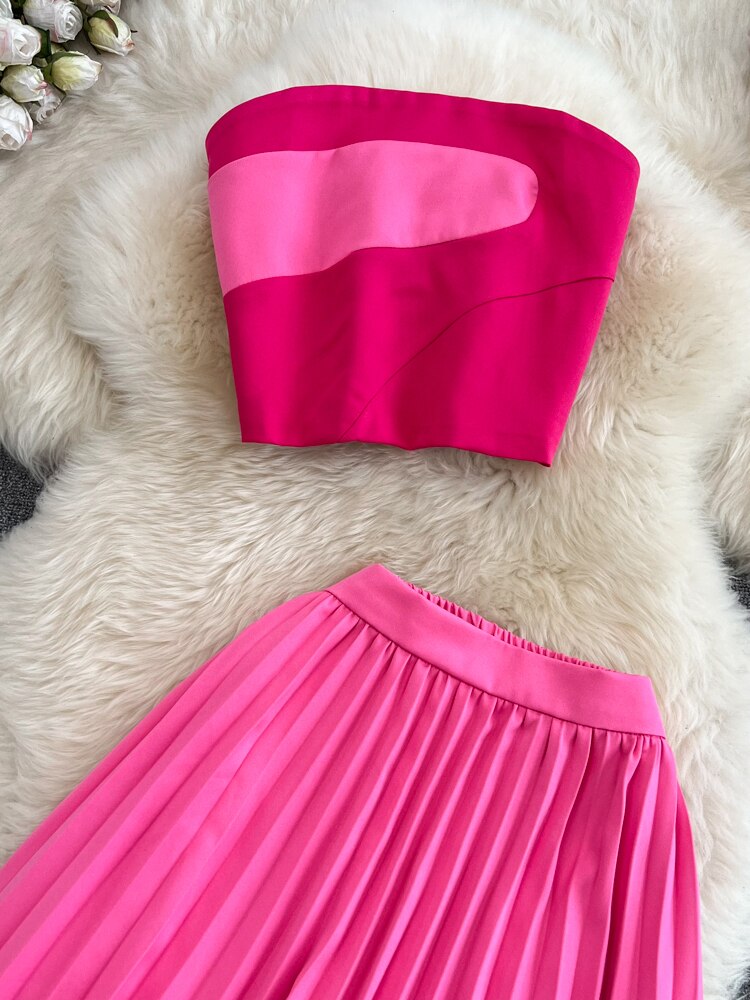 Znbbw Women Summer Dress Fashion Suit Spicy Girl Strapless Bra Top Two-piece High Waist Draped Irregular Pleated Dress D3068