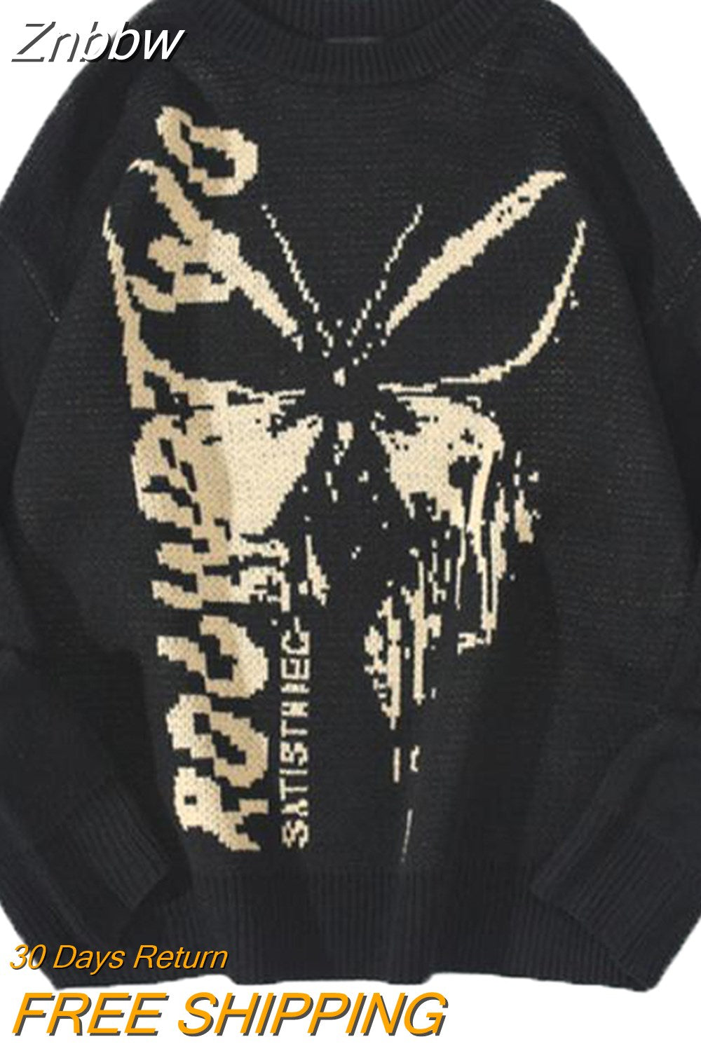 Znbbw Women Sweaters Harajuku 2023 Autumn Winter Hip Hop Knitwear Mens Loose Tops Butterfly Streetwear O Neck Casual Pullover Sweater