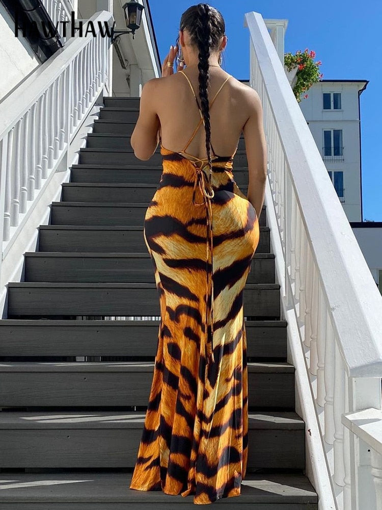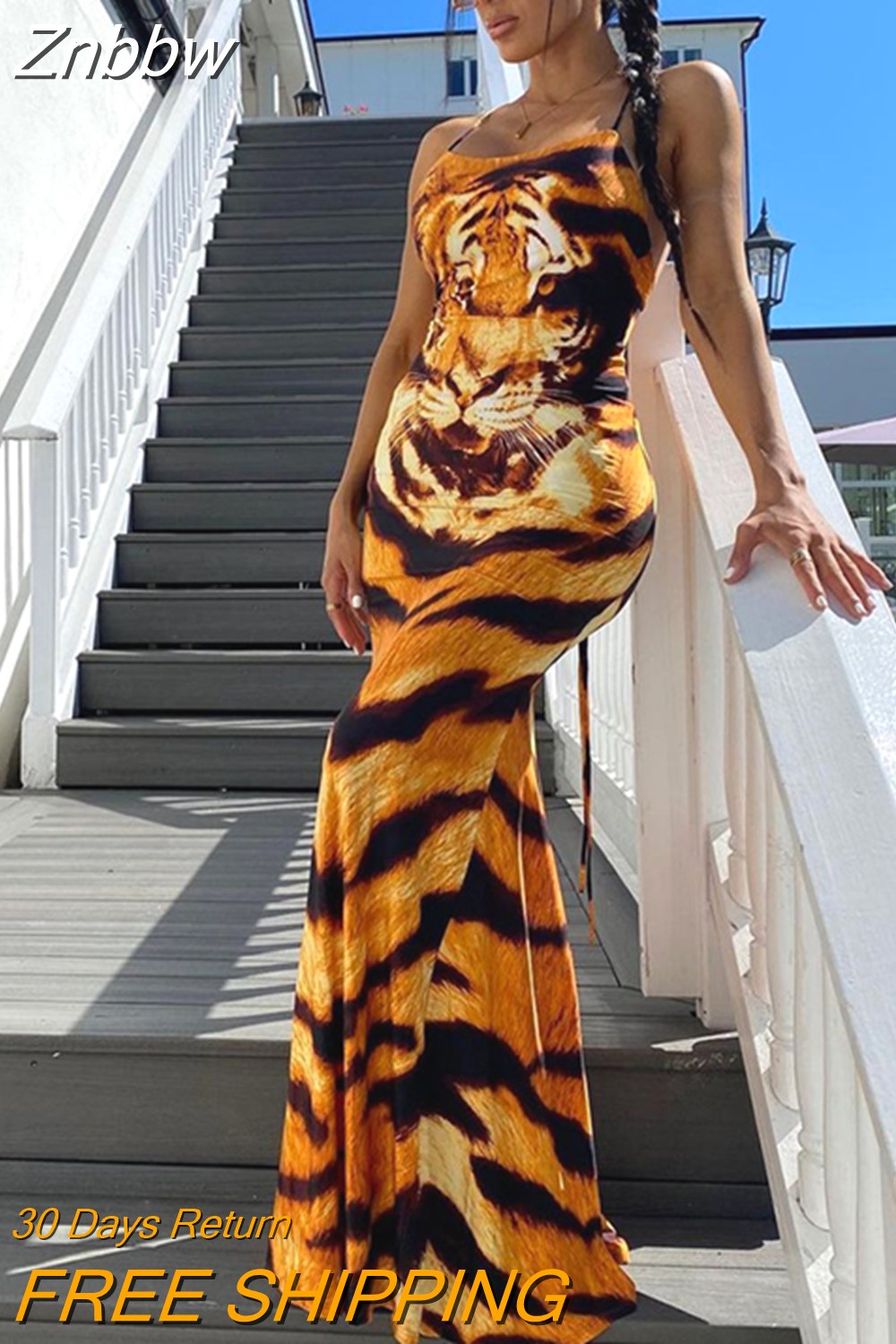 Znbbw Women Tiger Printed Bodycon Sleeveless Party Club Evening Long Dress 2023 Summer Clothes Wholesale Items For Business