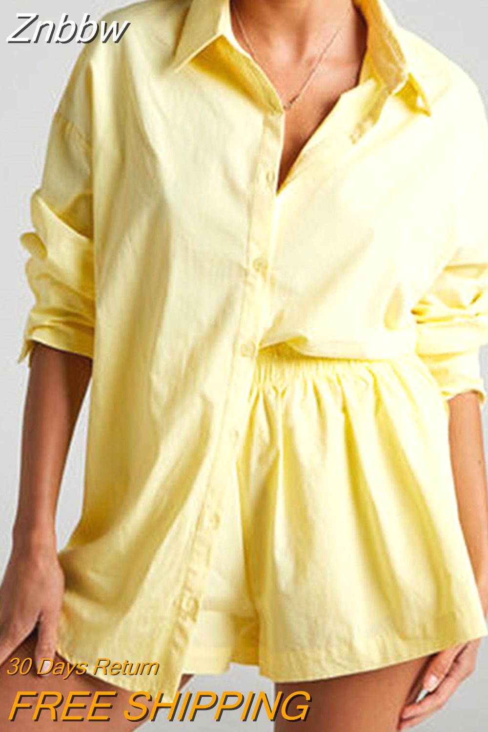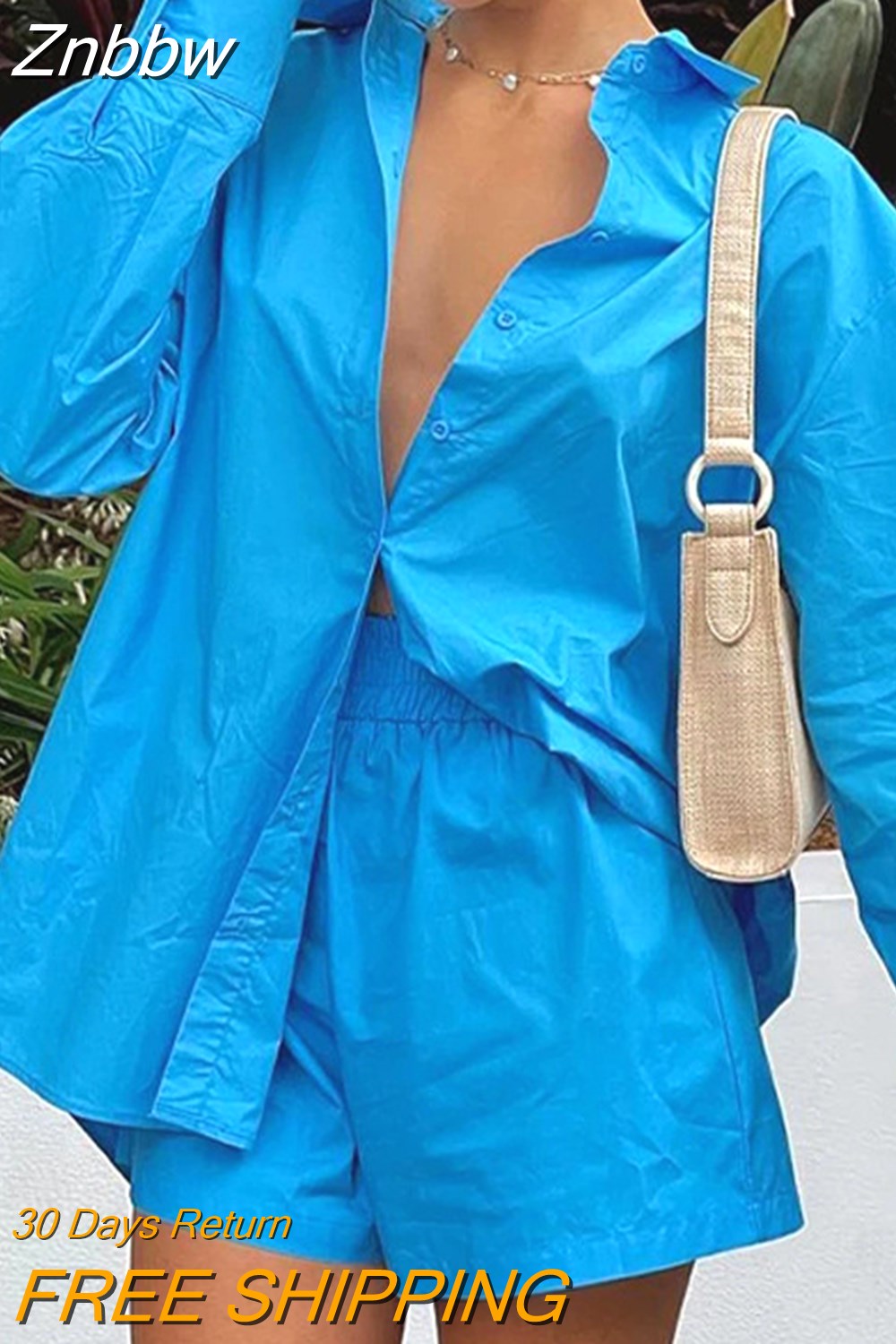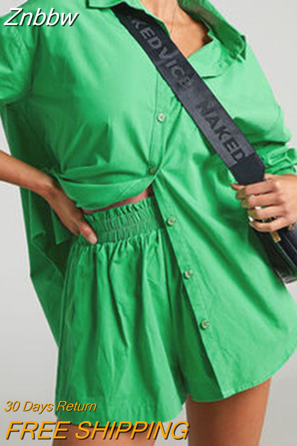 Znbbw Women Tracksuit 2023 Shirt Shorts Two Piece Set Cotton Fashion Clothing Outfits Women Blouses Women's Summer Suit Tracksuits