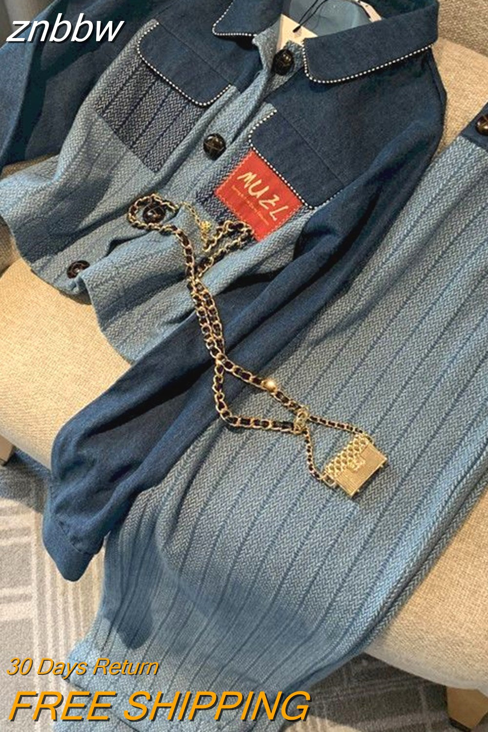 znbbw Women Two-piece Pant Set Imitation Denim Jacket + Wide Leg Long Trousers Casual High Street Fashion Office Lady Autumn 2023