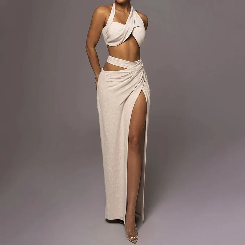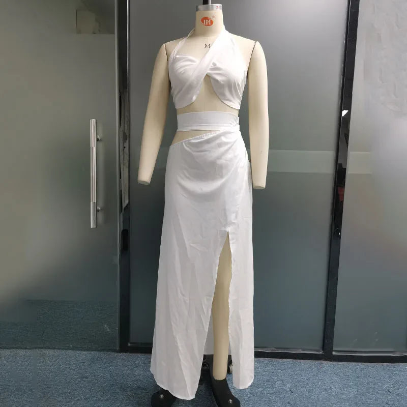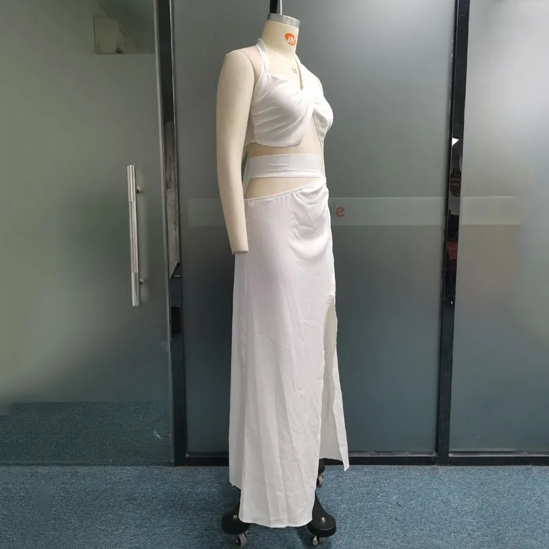 Znbbw Women Two Piece Set Fashion Sexy Solid One Shoulder Sleeveless Top Loose Slit Cutout Long Skirt Sets High Streetwear
