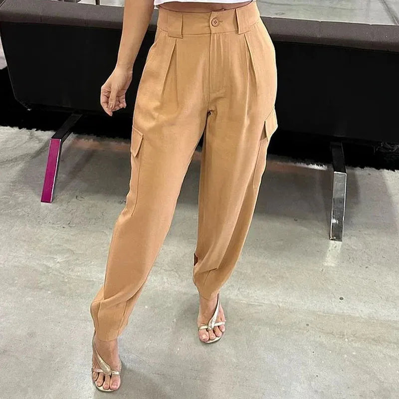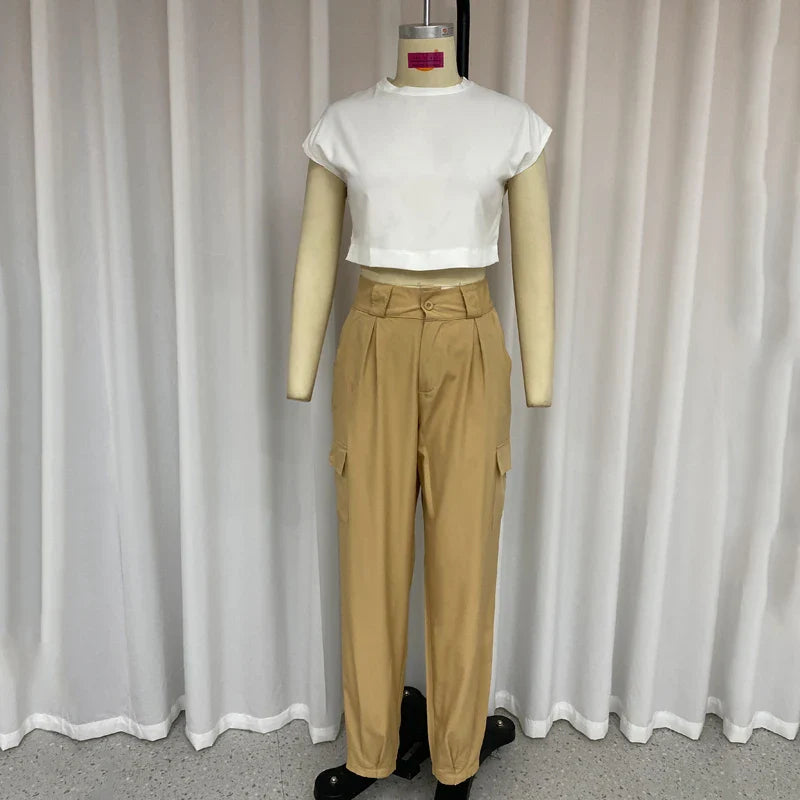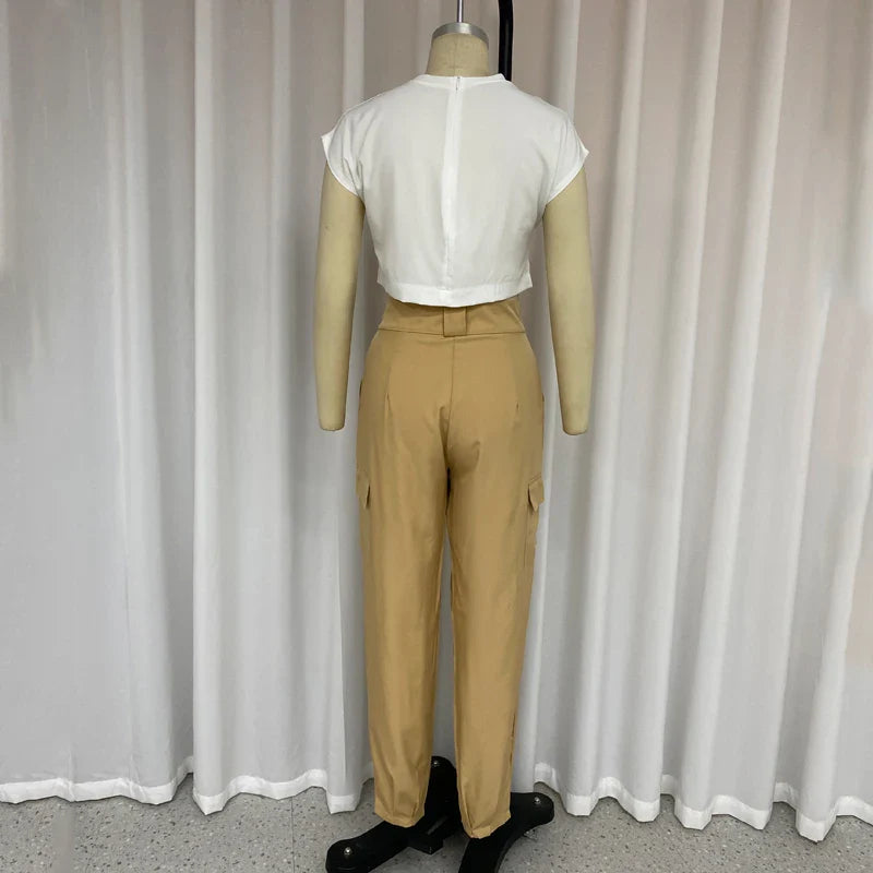 Znbbw Women Two Piece Set Summer Fashion Round Neck Sleeveless Top Casual Nipped Waist With Pocket Cargo Pants Sets Streetwear