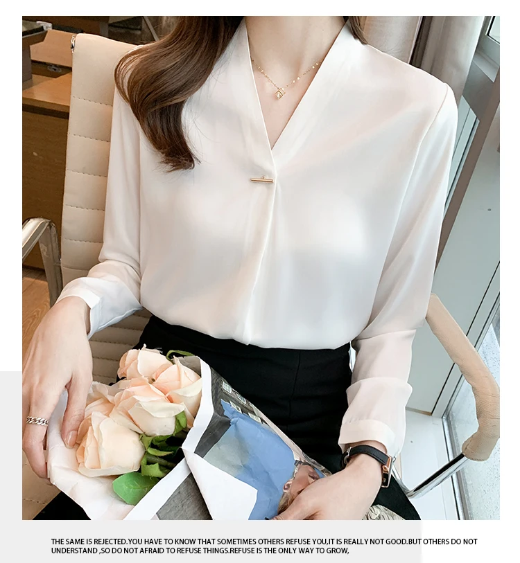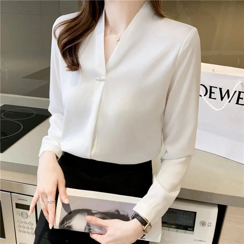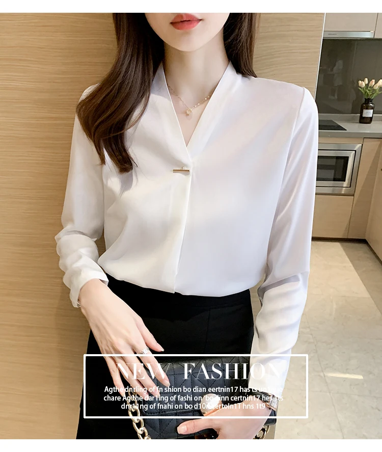 Znbbw Women V-Neck White Chiffon Blouse Blouse Shirt Tops Long Sleeve Blouse Women Blusas Mujer De Moda 2023 Blouses Femme A296