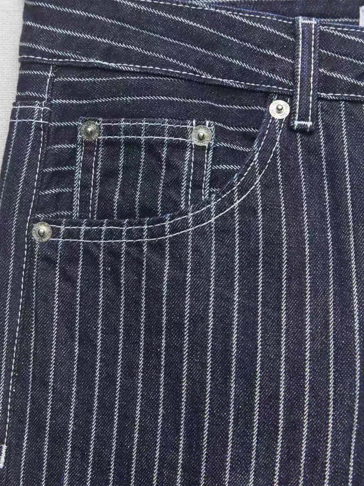 Znbbw Women Vintage Jeans For Women 2023 Striped Denim Jeans Work Pants Women jeans