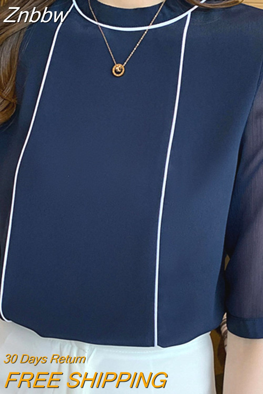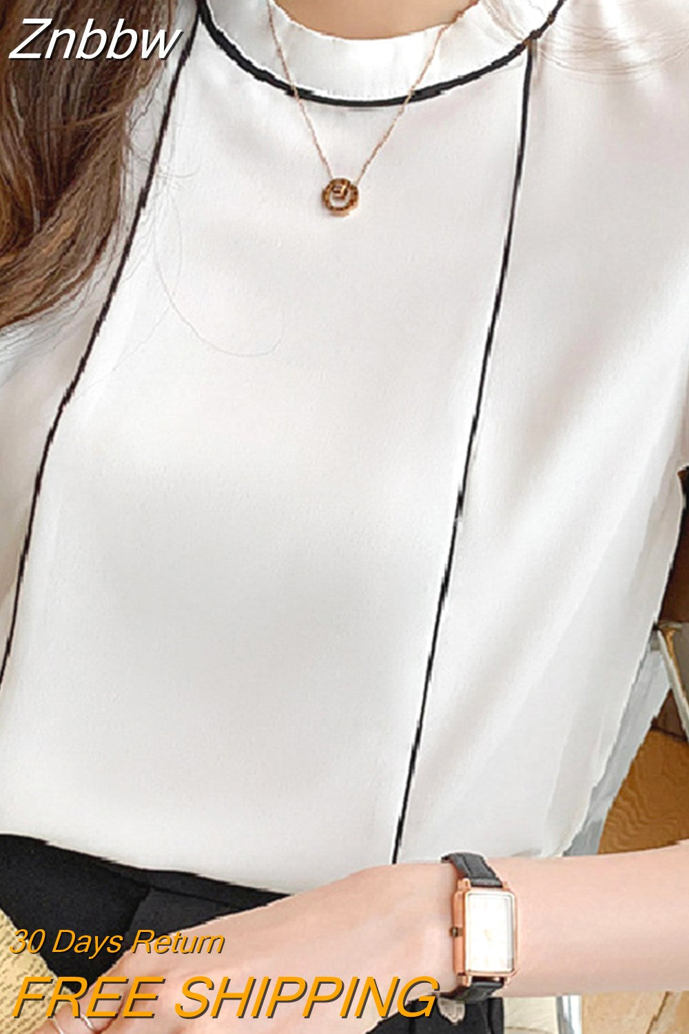 Znbbw Women White Blouse Short Sleeve Blouse Women O-Neck Chiffon Blouse Shirt Tops Women Blusas Mujer De Moda 2023 Blouses F97