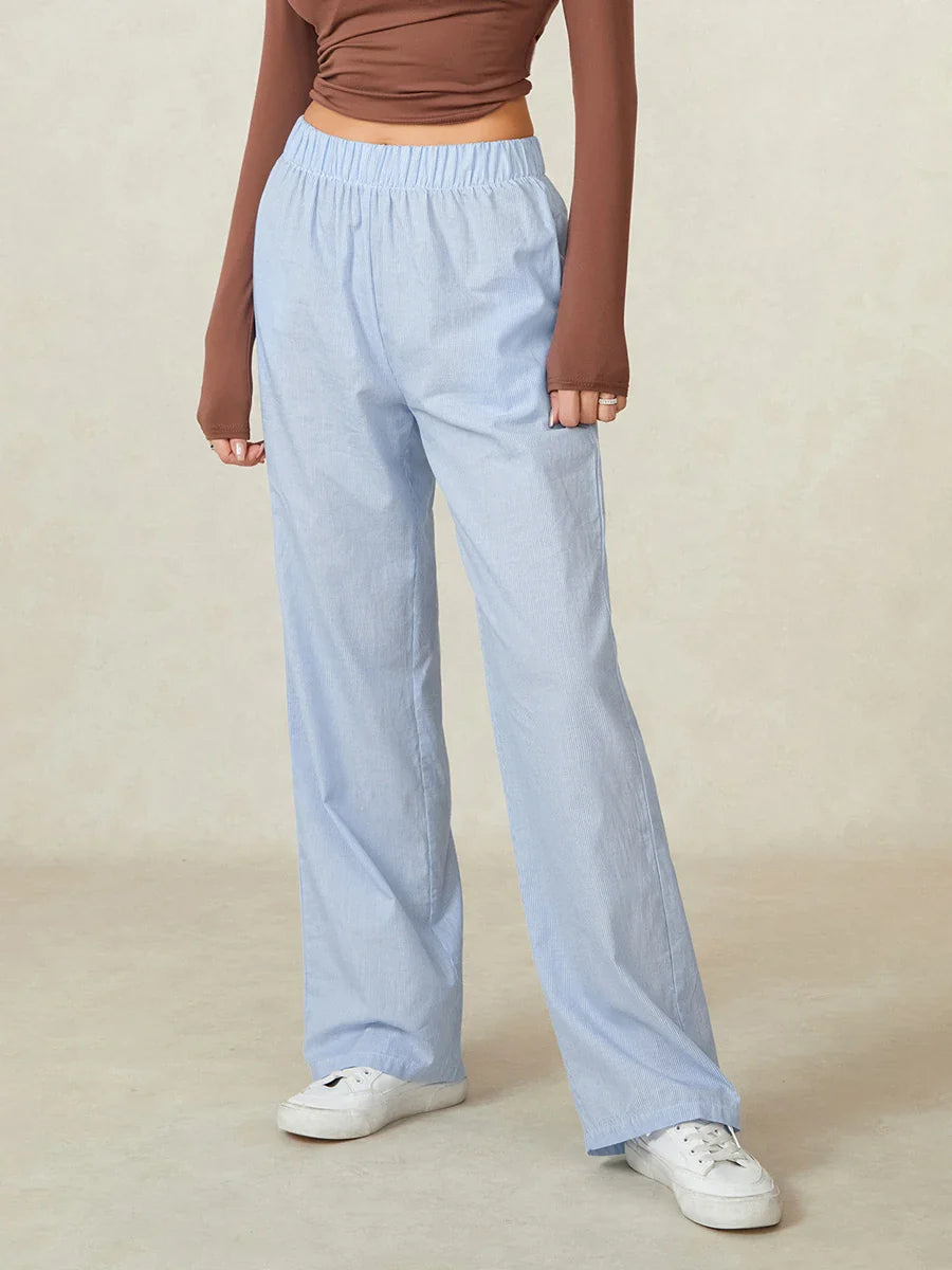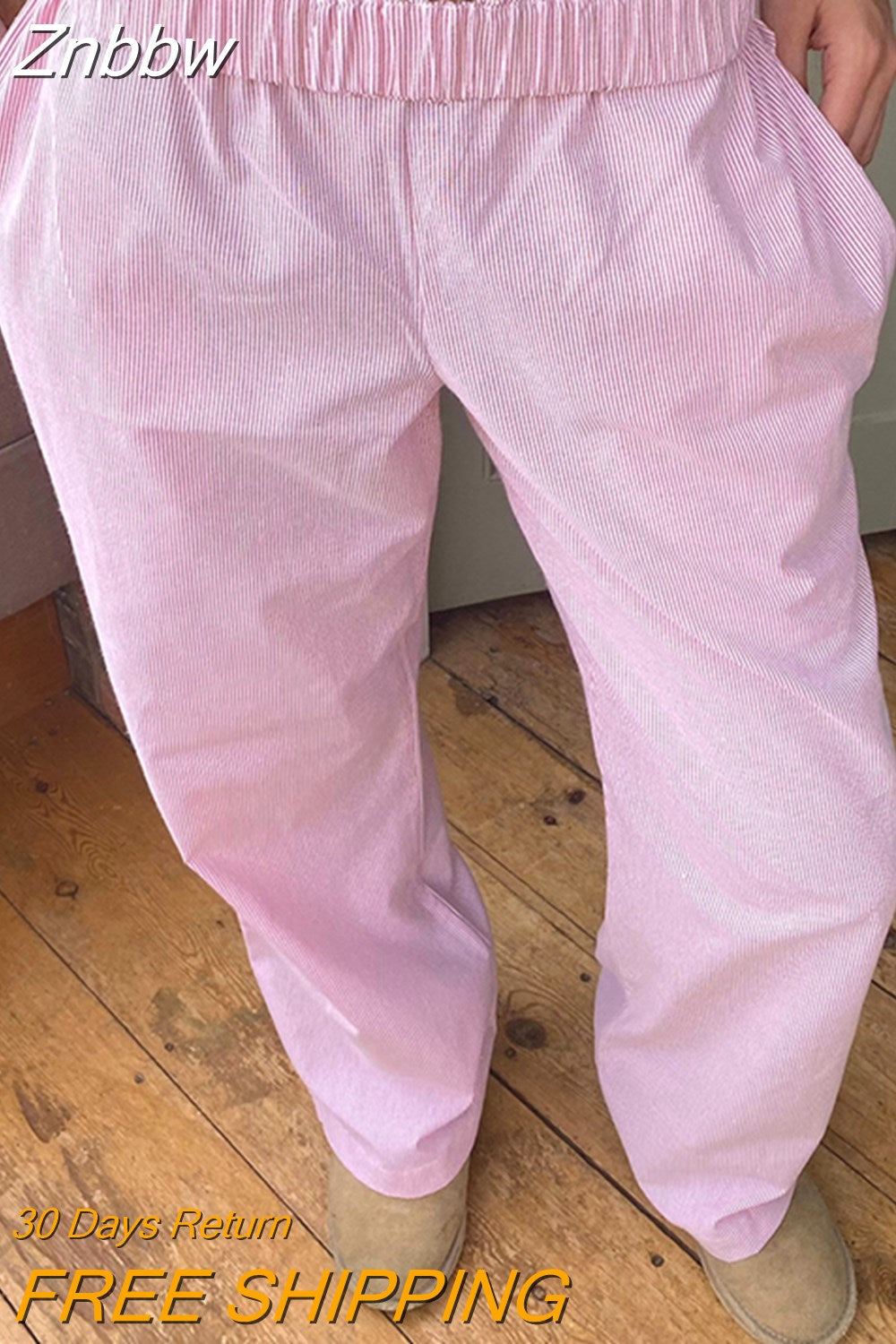 Znbbw Women Woven Pajama Pants Loose Striped Print Elastic Waist Trousers with Pockets Lightweight Lounge Pants Sleepwear