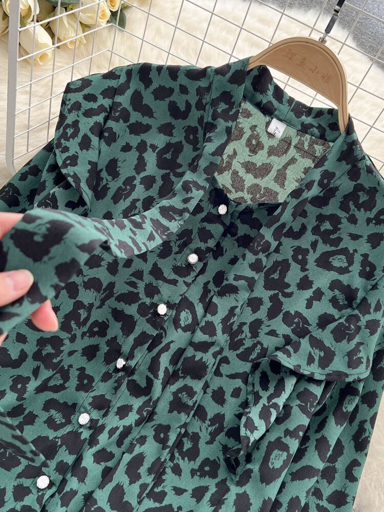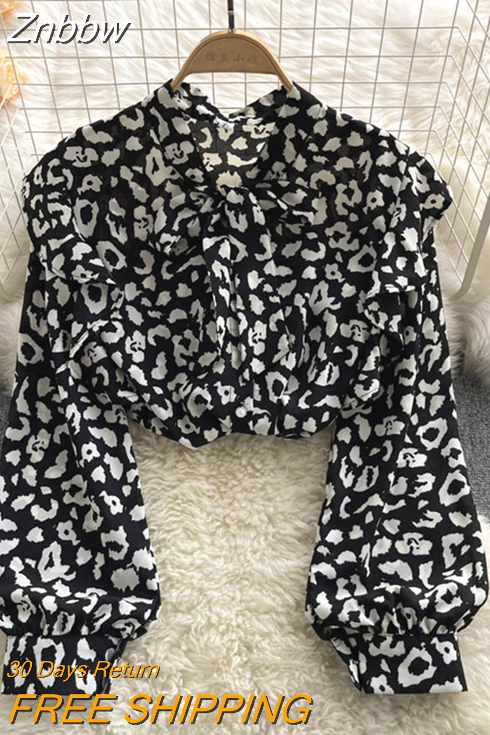 Znbbw WomenEuropean American Retro Leopard Print Blouse Female Loose Thin Lantern Sleeve Blusa All-match Chiffon Shirt KK1761