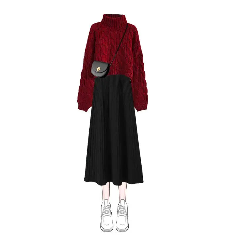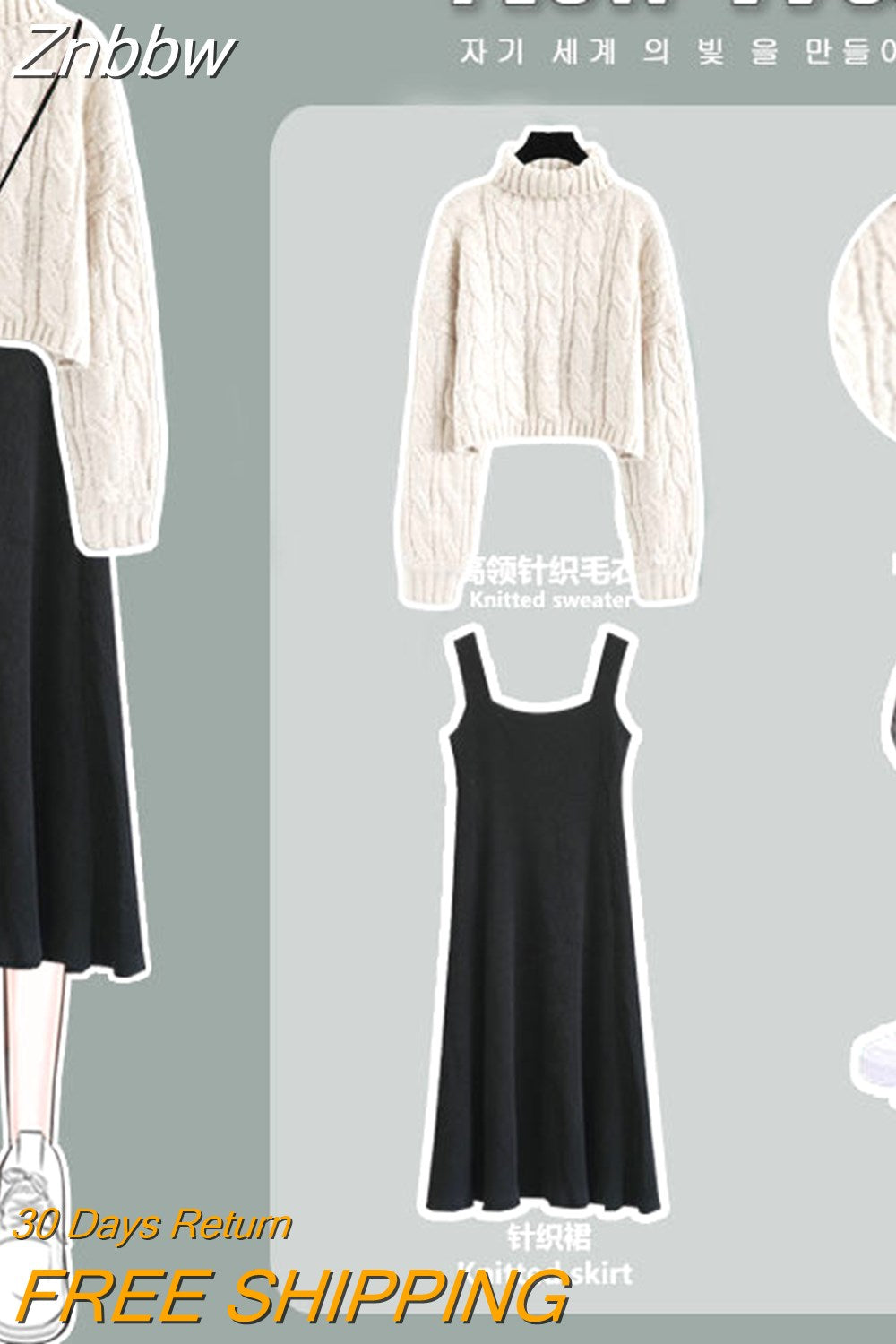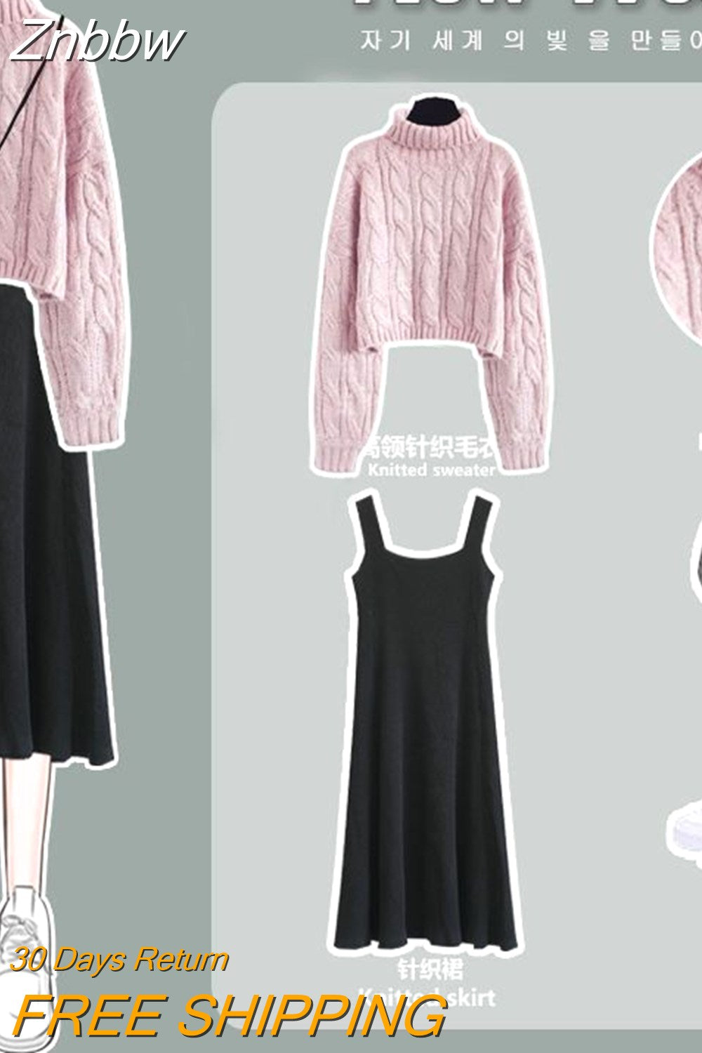 Znbbw Women's Autumn Winter Pink Sweater Korean Lady Casual Knit Pullover Black Dress Two Piece Set 2023 New Elegant Outfits