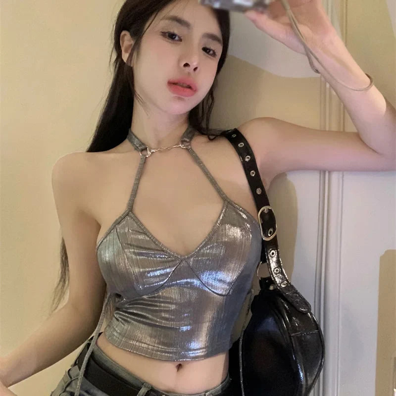 Znbbw Women's Crop Top Hollow out Solid Color Sleeveless Tank Top