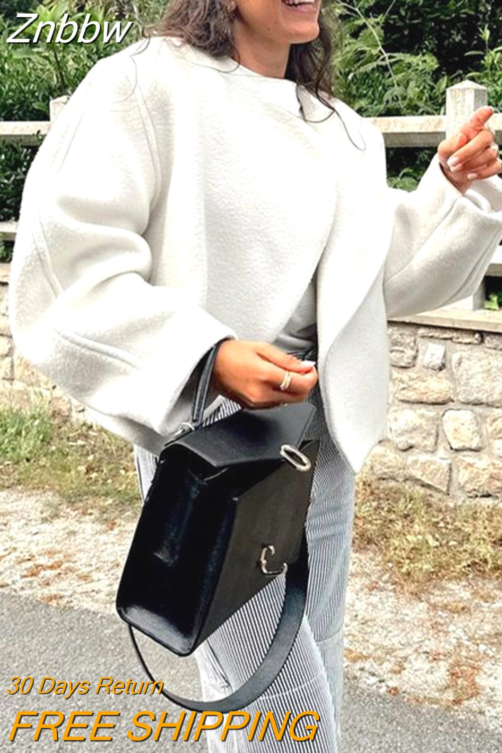 Znbbw Women's Fashion Solid Thicken Cropped Jacket Top Long Sleeve Warm Autumn Winter Cardigan Female Casual Loose Woolen Streetwear