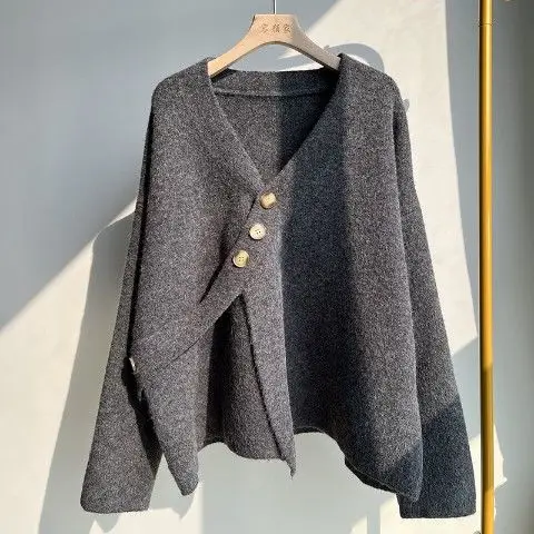 Znbbw women's jacket design small autumn winter high-quality soft loose long thick knit cardigan long sleeve sweater cardigan