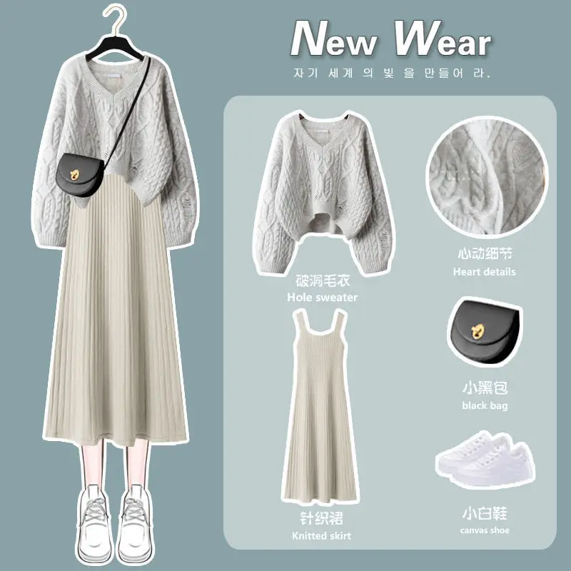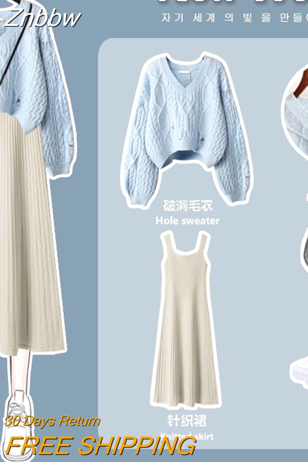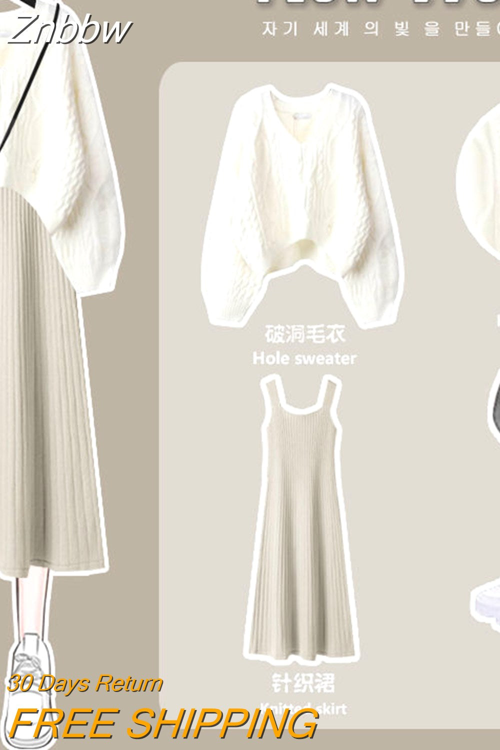 Znbbw Women's Knitted Sweater Skirt Two Piece Set Women Slim Elegant Tops Female Sweater Dress Suits Lady Knitting Outfit