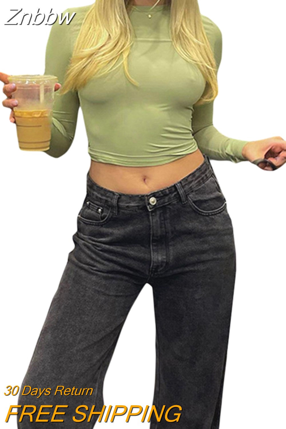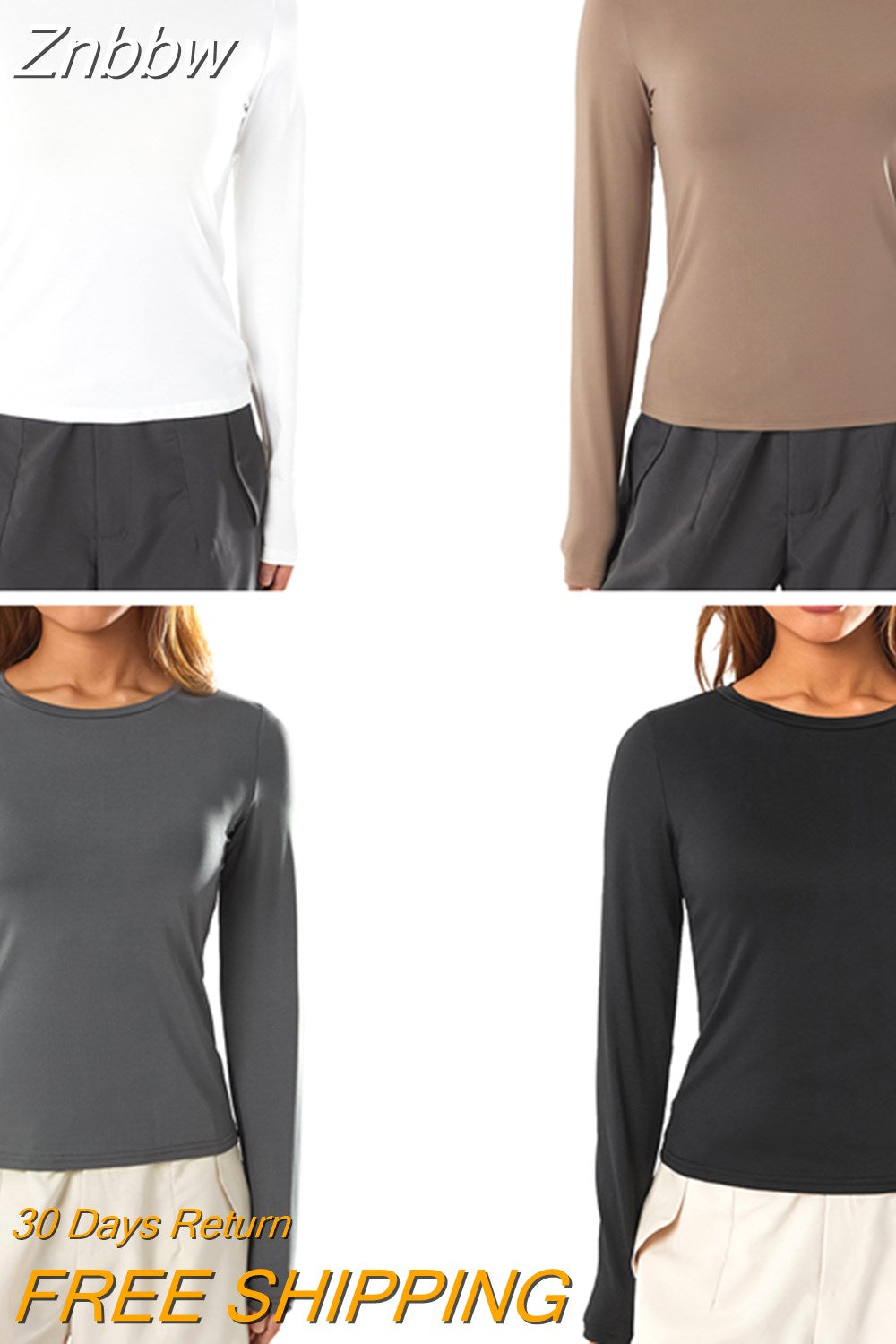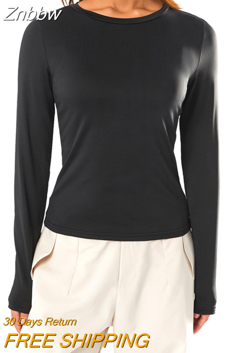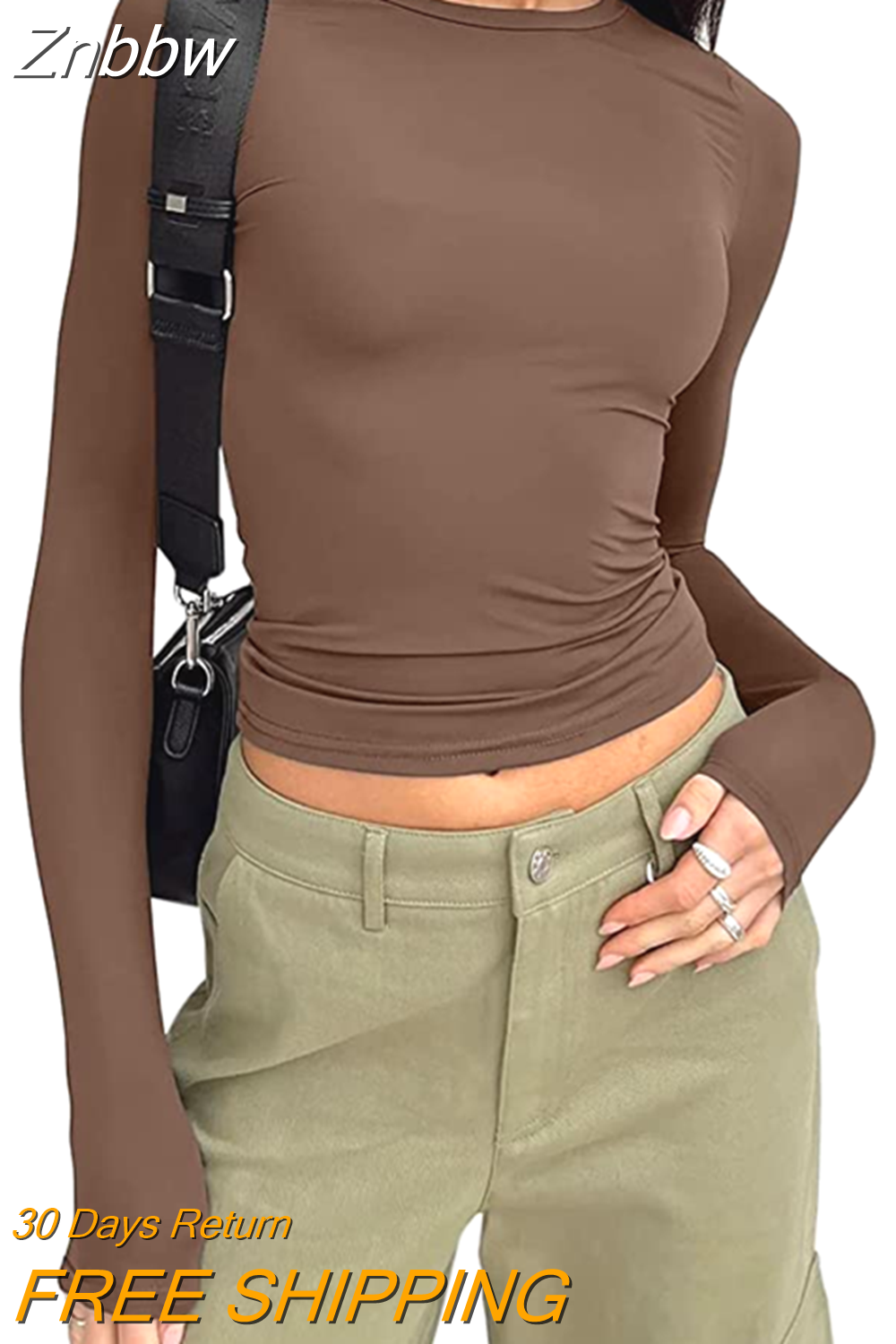 Znbbw Women's Slim Fit Going Out Crop Tops Casual Solid Color Crew Neck Long Sleeve Tight Tee Shirt Basic Streetwear 90s y2k Tees