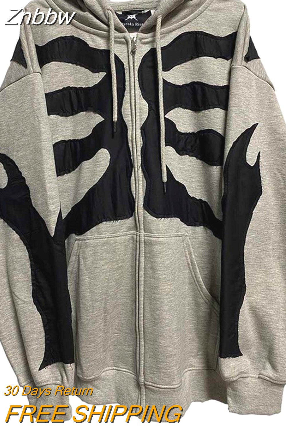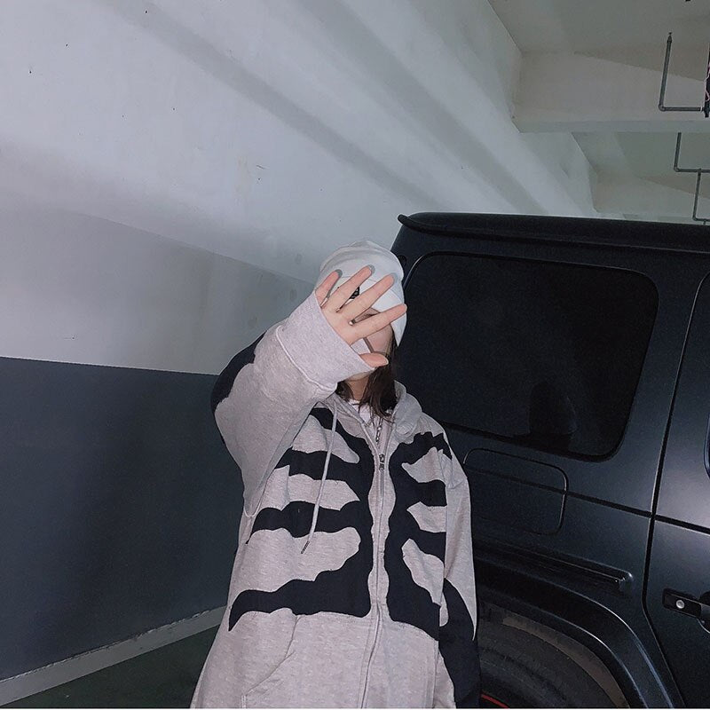Znbbw Y2K Harajuku Korean style loose Skull print goth long-sleeved hooded coat solid color retro shirt student Sweatshirt
