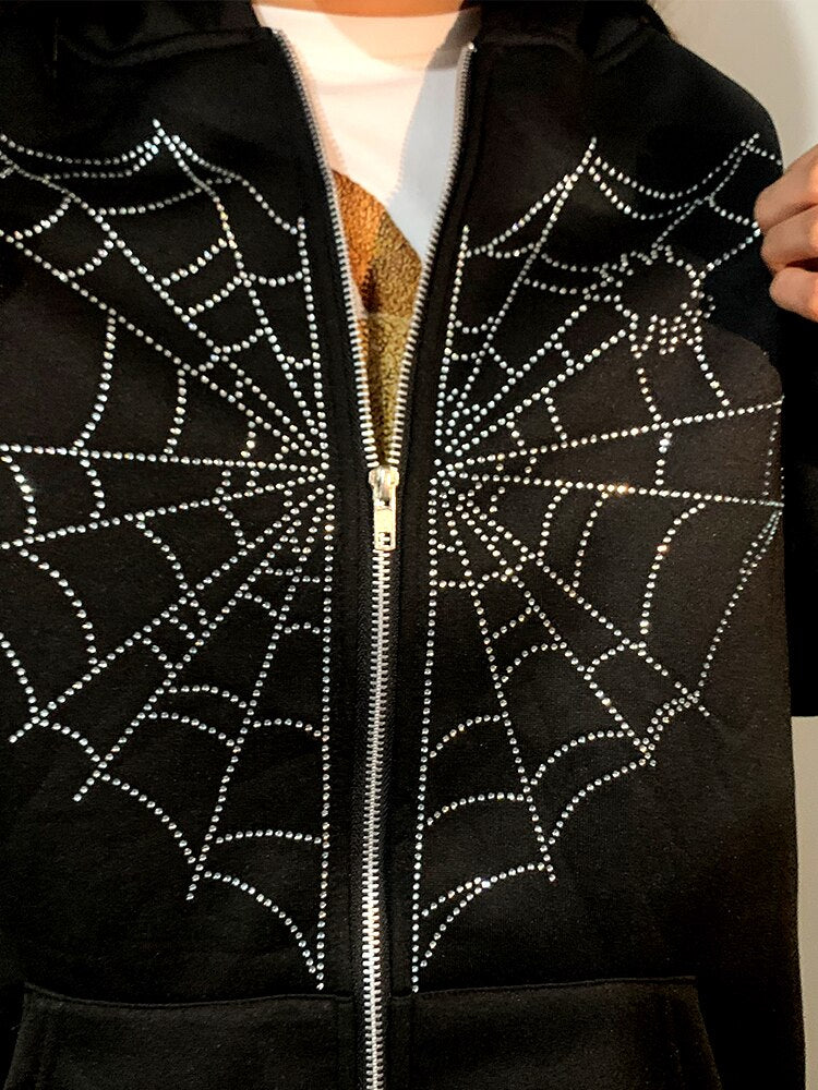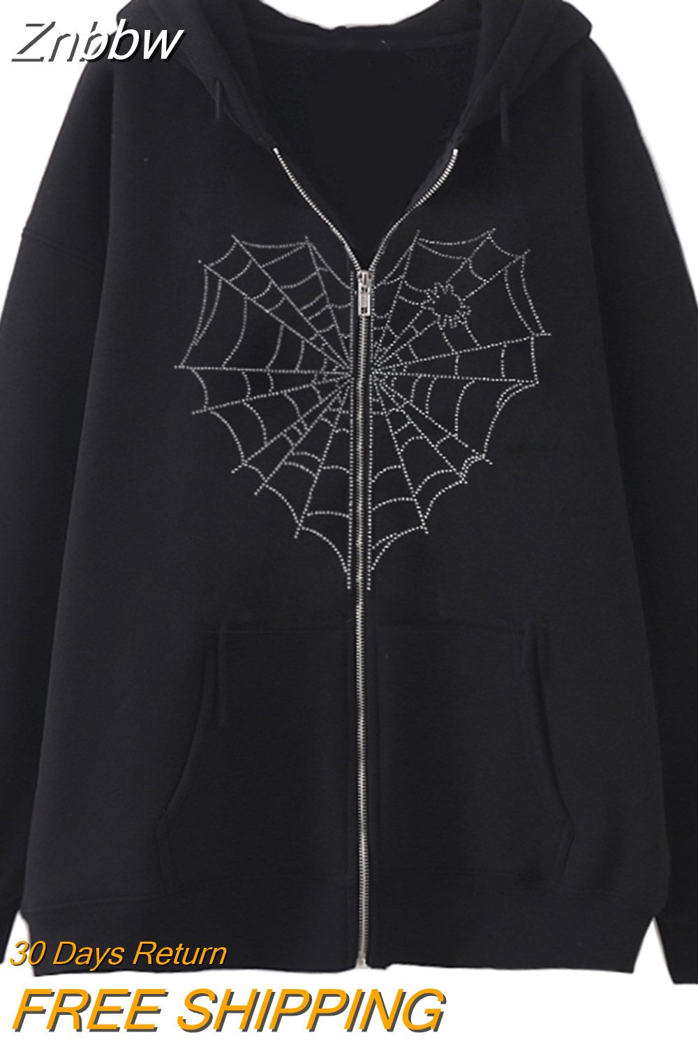 Znbbw Y2k Harajuku Men's Hoodie Halloween Hot Drill Spider Web Print Korean Sweatshirt Y2K Gothic Vintage Sweatshirt Men's Winter