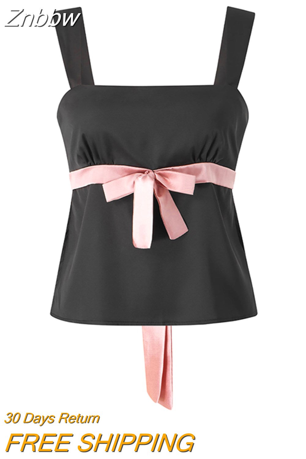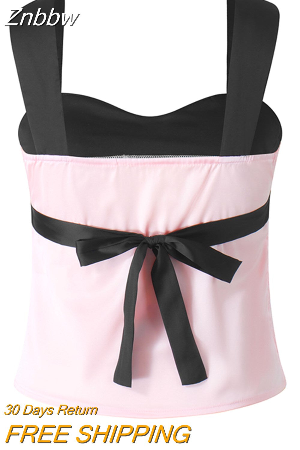 Znbbw Y2K Milkmaid Camisole Top Y2K Fairy Grunge Backless Tie Up Mini Vest Retro Aesthetic Women Crop Top Streetwear