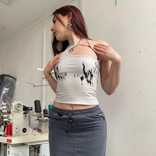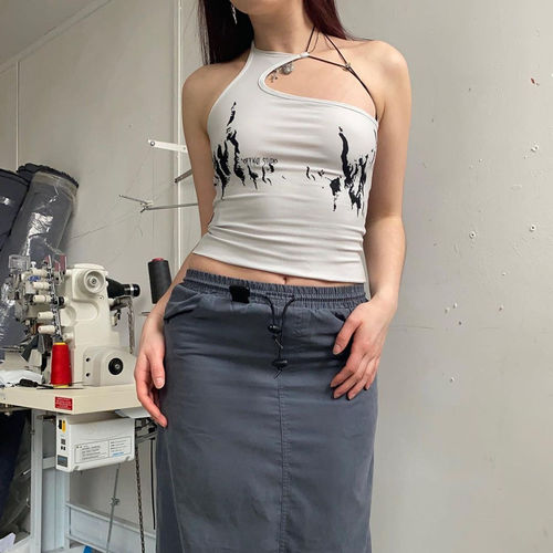 Znbbw y2k sexy suspender top 200s Summer vintage personality short print T-shirt goth punk grunge street crop top Harajuku Cute