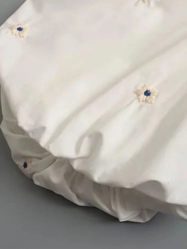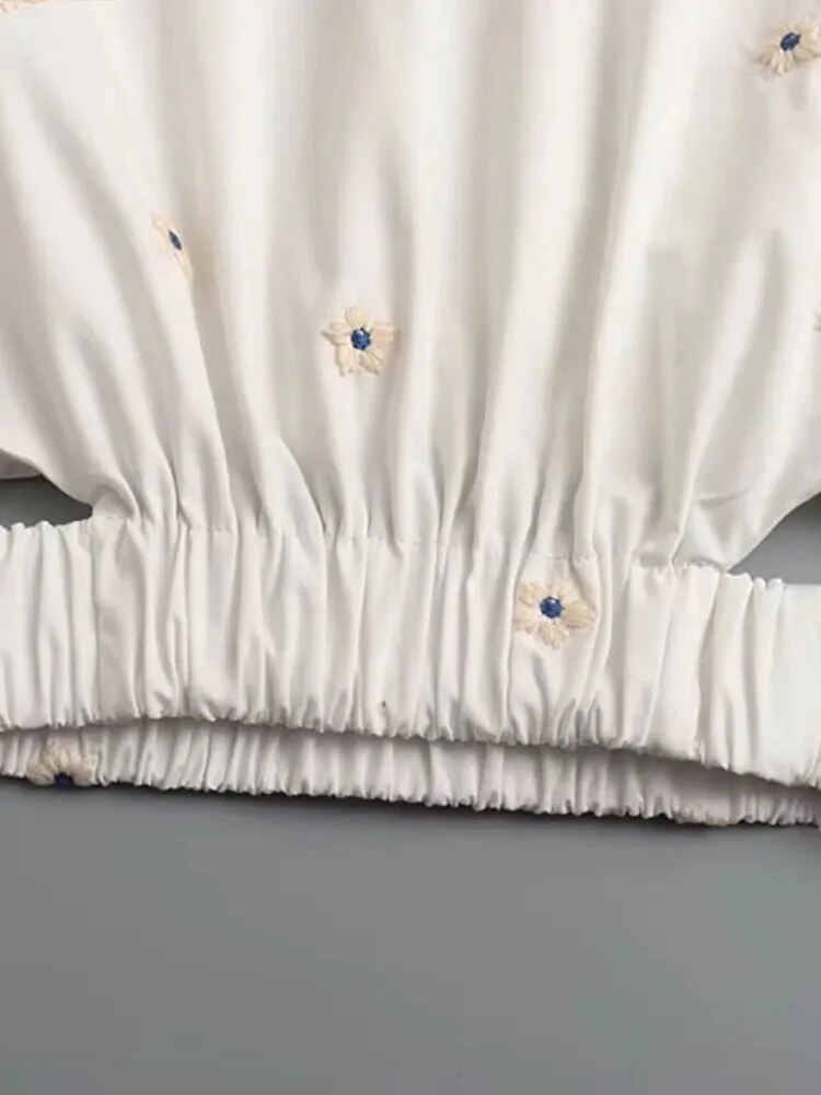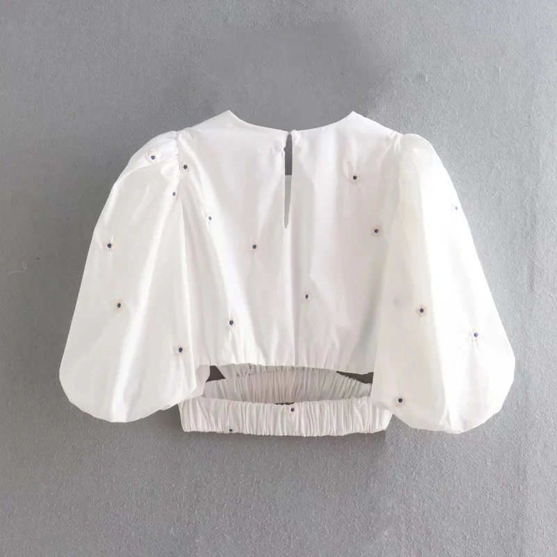 Znbbw ZBZA 2023 Sweet Fashion Floral Embroidery Cropped Blouses Vintage Puff Sleeve Hollow Out Female Shirts Chic Tops 202303