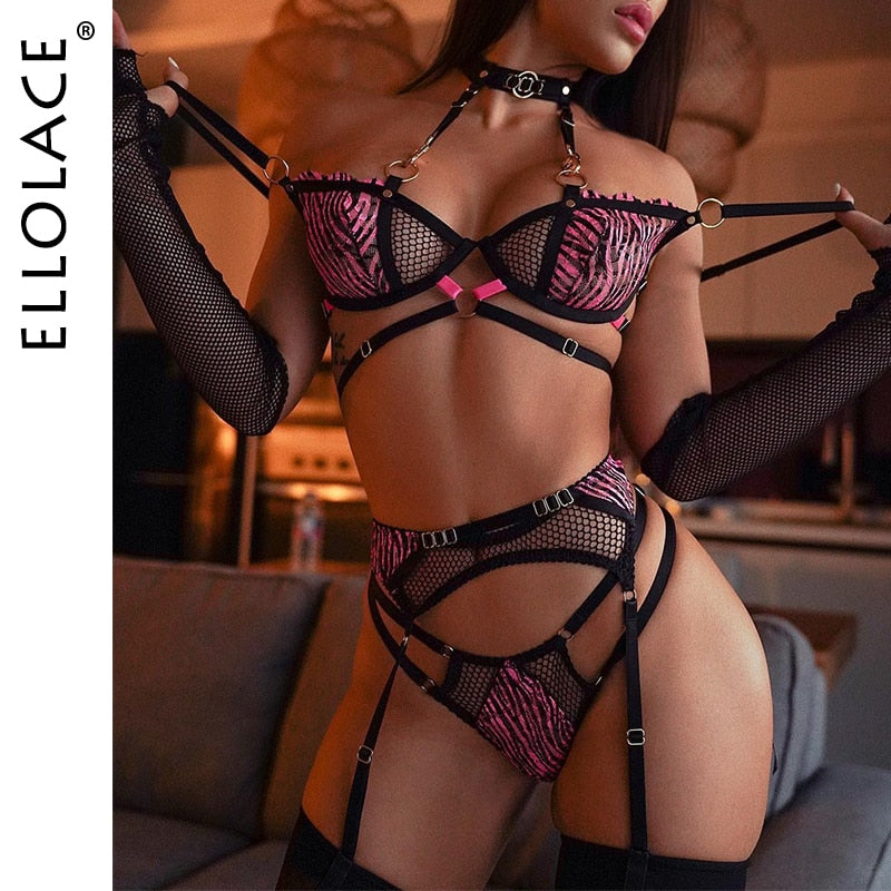 Znbbw Zebra Lingerie Fancy Lace Underwear See Through Halter Bra Delicate Intimate Luxury Sexy Outfits Garters Brief Sets